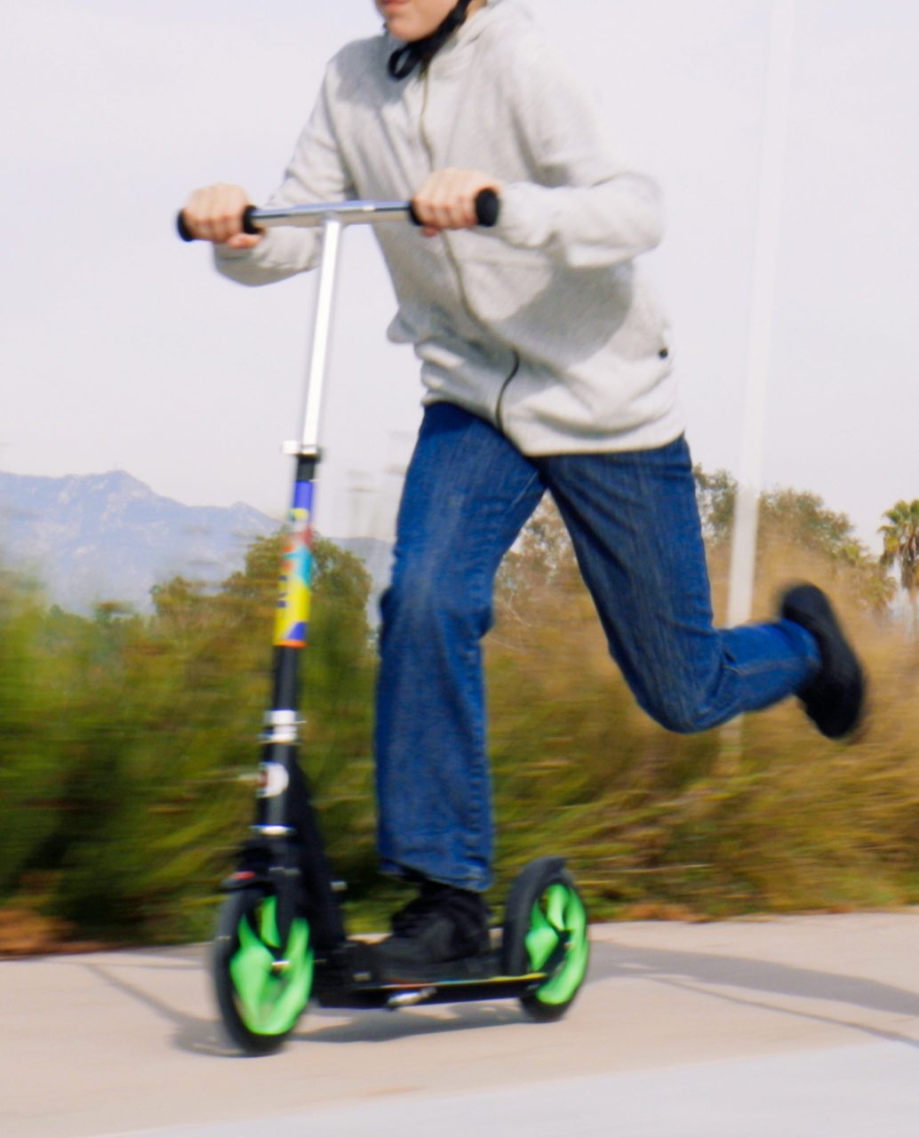 Equipped with extra-large 200mm urethane wheels for a smoother, faster ride.