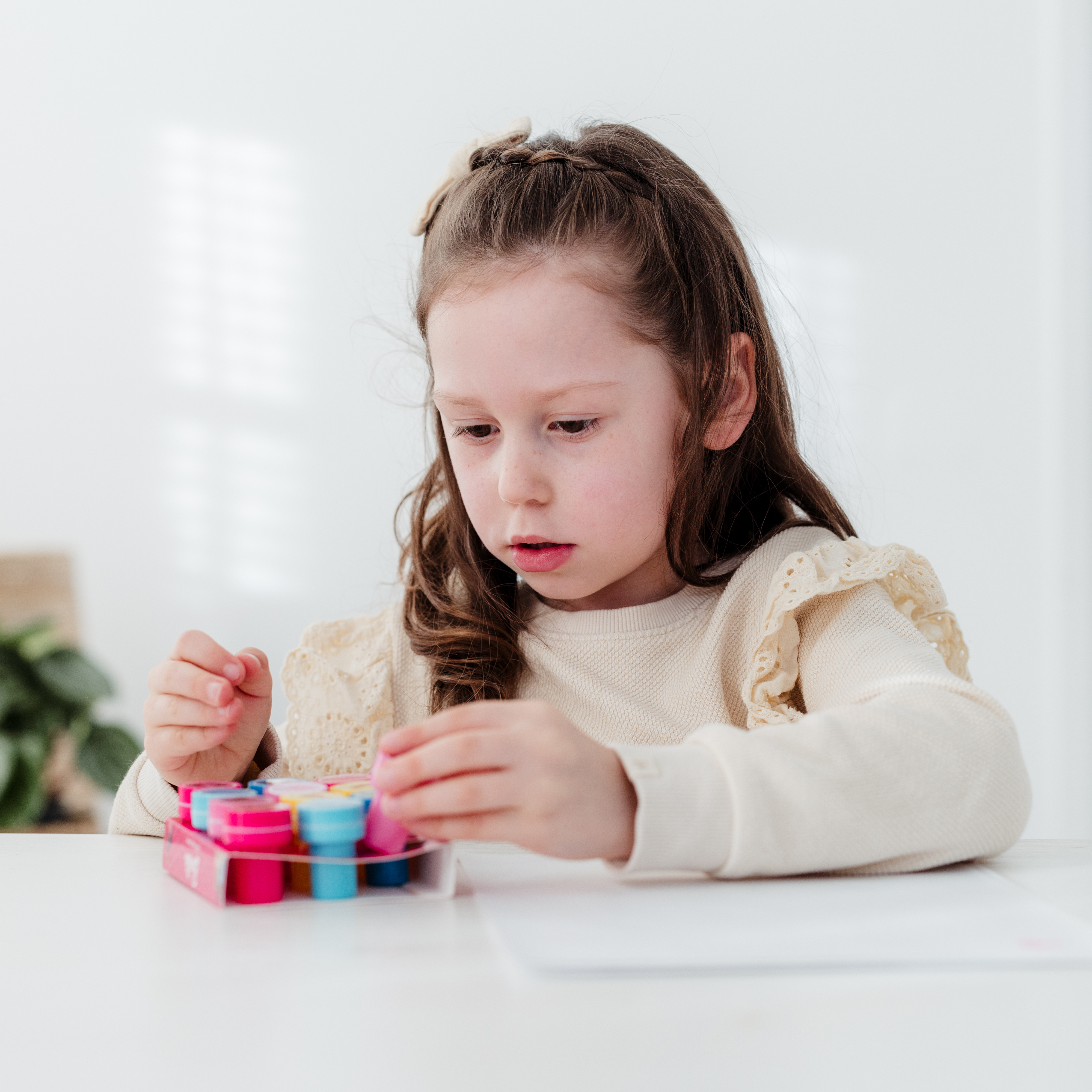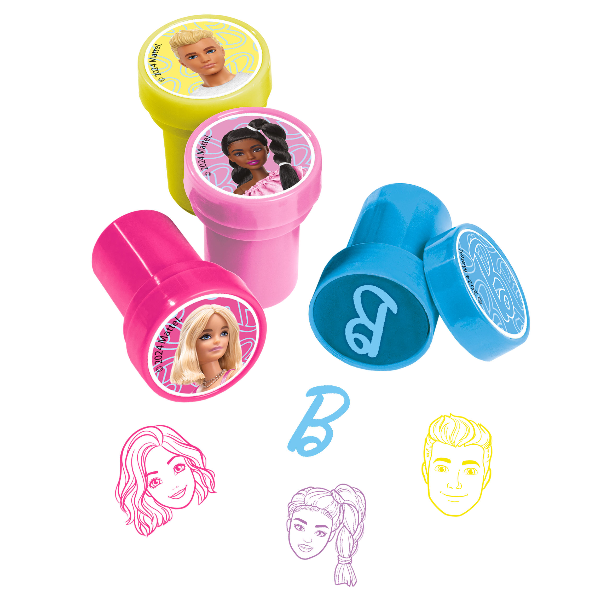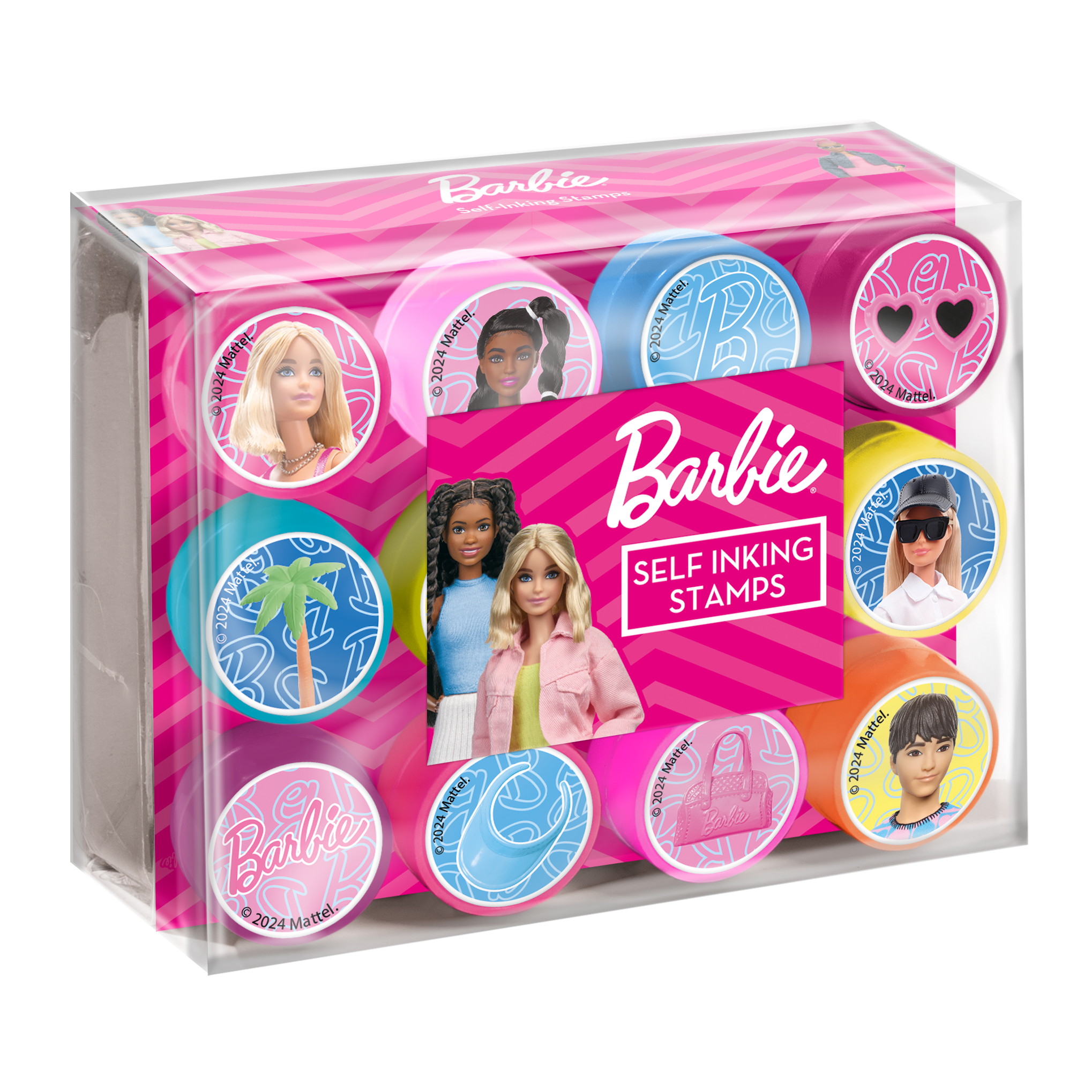 Add a touch of Barbie magic to crafts and creations with the Totum Barbie Self-Inking Stamper Set (12 Pack)! This fun set includes 12 different self-inking stamps, perfect for decorating cards, notebooks, drawings, and more. Designed for little hands aged three and up, each stamp features a unique Barbie-themed design, including images of Barbie, her friends, logos, and stylish icons like palm trees and handbags. No need for messy ink pads – these Barbie Self-Inking Stamps have the ink built right in! Just press down to leave a crisp, colourful impression. Using the stamps encourages creativity, pattern recognition, and helps develop hand-eye coordination.