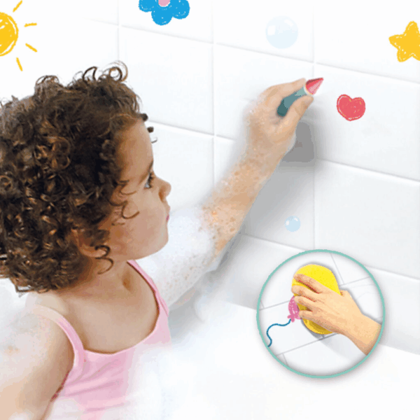 The chunky crayons are easy for small hands to hold and glide smoothly onto wet surfaces. When bathtime is over and the artistic session is done, the crayon marks simply wash away with a little water and a sponge, leaving no residue behind. It’s a fantastic way to make getting in the tub extra fun.