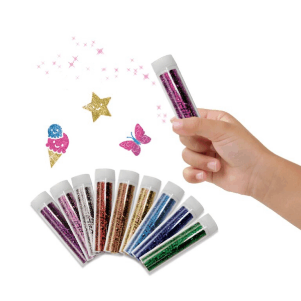 The set includes ten tubes filled with a beautiful assortment of vibrant colours, including blue, red, green, pink, silver, and gold. It’s perfect for decorating drawings, cards, models, or any other creation that needs a bit of extra sparkle. Now you can make your art shine while making a positive choice for the planet.