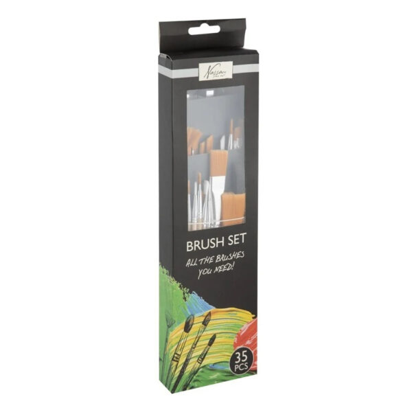 The ultimate collection for any painter, this comprehensive 35-piece Brush Set from Nassau Fine Art has every tool you could possibly need. This extensive set includes a huge variety of brush shapes and sizes, from large flat brushes for broad strokes to fine-tipped detail brushes for precision work.