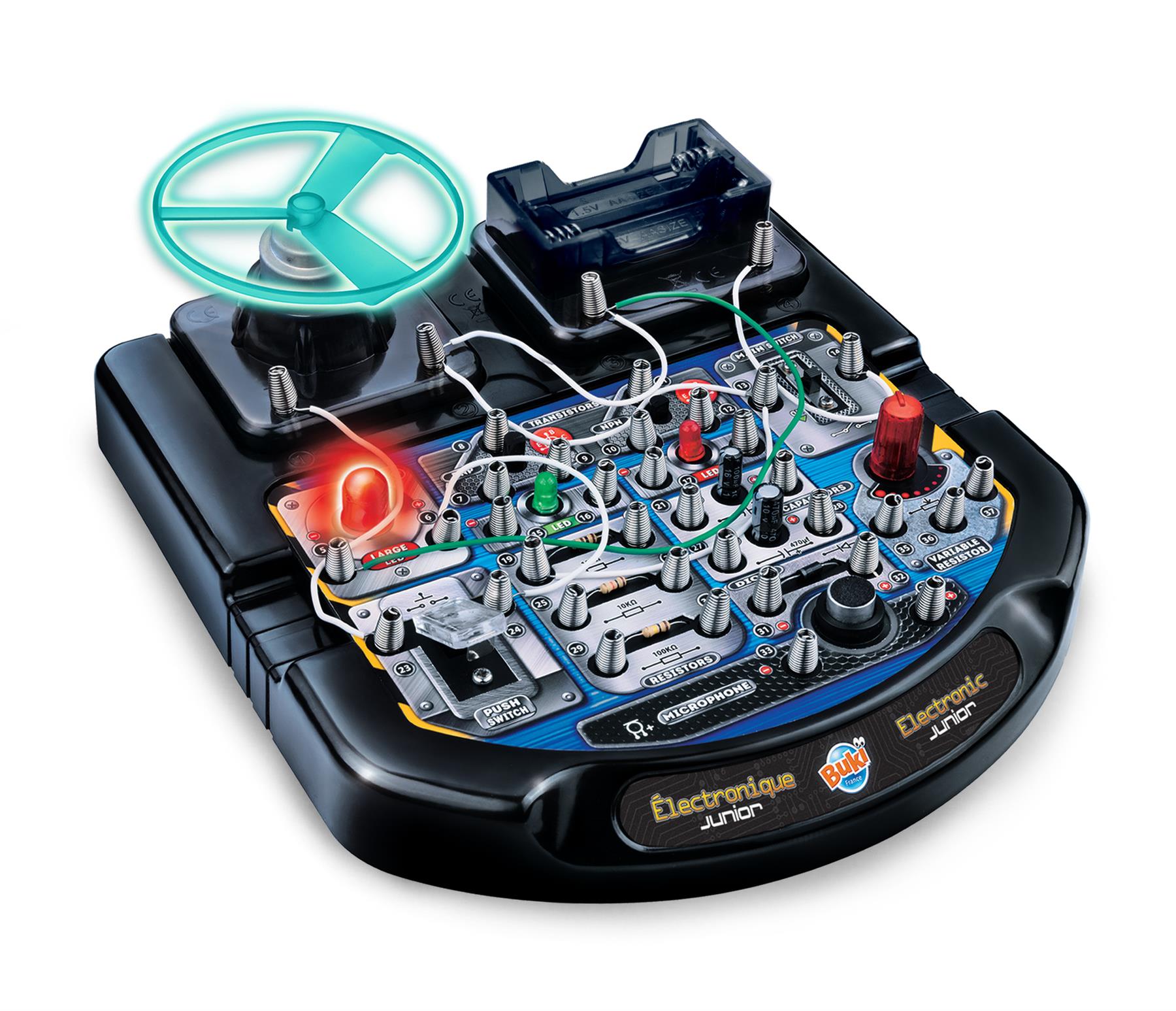 Discover the fascinating world of electronics with the Buki Electronic Junior kit. This brilliant hands-on set is the perfect introduction for any budding engineer, allowing them to safely build 20 different electronic assemblies without any soldering. By following the clear, step-by-step instructions, children can easily connect the components on the console to create working circuits. The Buki Electronic Junior kit is packed with fun outcomes, from launching a propeller into the air and learning Morse code to building a voice-activated switch. It’s a fun, safe, and engaging way to learn the basics of electronics.