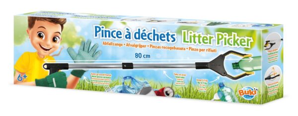 Encourage environmental responsibility and outdoor activity with the Buki Toys – Litter Picker kit. Designed for children aged 5 years and older, this set provides the tools needed to safely collect litter and learn about keeping natural spaces clean. The main component is a child-sized litter picker tool, approximately 80 cm long, allowing kids to grab items from a distance without direct contact. It features an easy-to-use trigger handle connected to gripping claws, making it simple to pick up various types of litter like bottles, cans, and paper.