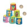 The lightweight plastic cans are safe for young children and are decorated on two sides. One side features cheerful animal characters, and the other has a number, so you can play for points to see who gets the highest score. It’s a fantastic game for encouraging active play and helping to develop hand-eye coordination.
