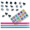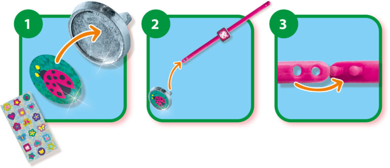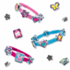 The kit includes three colourful plastic bracelets and a variety of different charms. The real fun comes from the sheet of shiny glitter stickers. Simply choose a sticker and press it onto a charm base. Then, slide your custom charms onto the bracelets to create your unique design. The charms can be easily moved and rearranged, so you can make a different bracelet to match your mood every day.