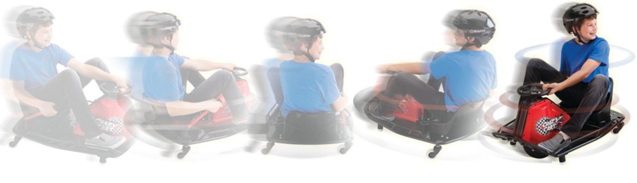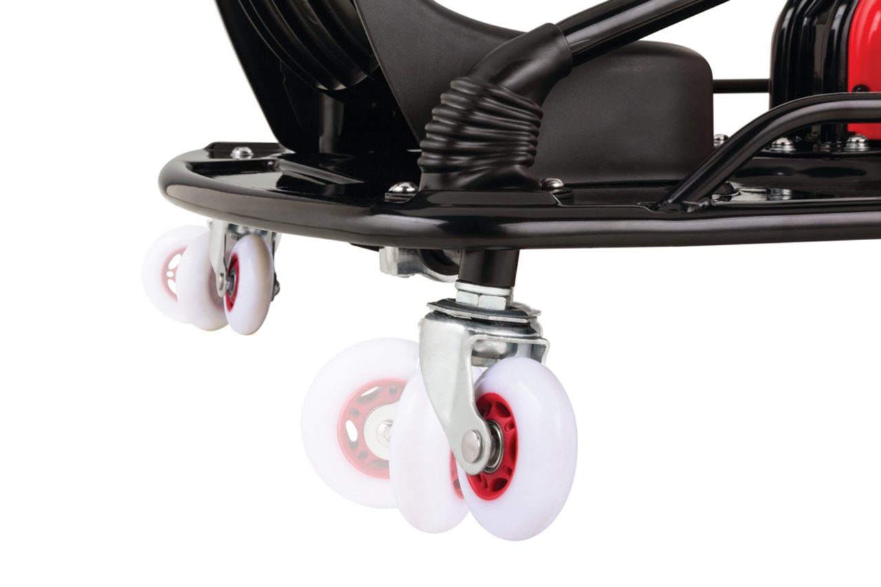Get ready for the ultimate drifting experience with the Razor Crazy Cart. Engineered for riders aged nine and up, this is the original, revolutionary drifting machine. Reaching speeds of up to 12 mph, the Crazy Cart’s patented system allows the driver to vary the rear caster angle, enabling them to drive and drift forwards, backwards, sideways, and diagonally.
