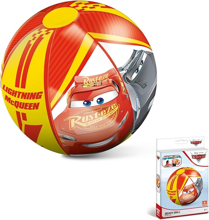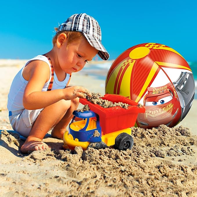 Bring high-speed excitement to your next seaside trip with this brightly coloured inflatable toy. Little racing fans will love passing around this cars beach ball while playing in the sunshine. The vibrant graphic design features favourite track heroes Lightning McQueen and Jackson Storm, making it highly engaging for young children. Throwing and catching helps toddlers develop crucial hand-eye coordination and gross motor skills while burning off energy outdoors. Parents can easily pack this lightweight accessory into a rucksack for days out at the park or family holidays abroad.