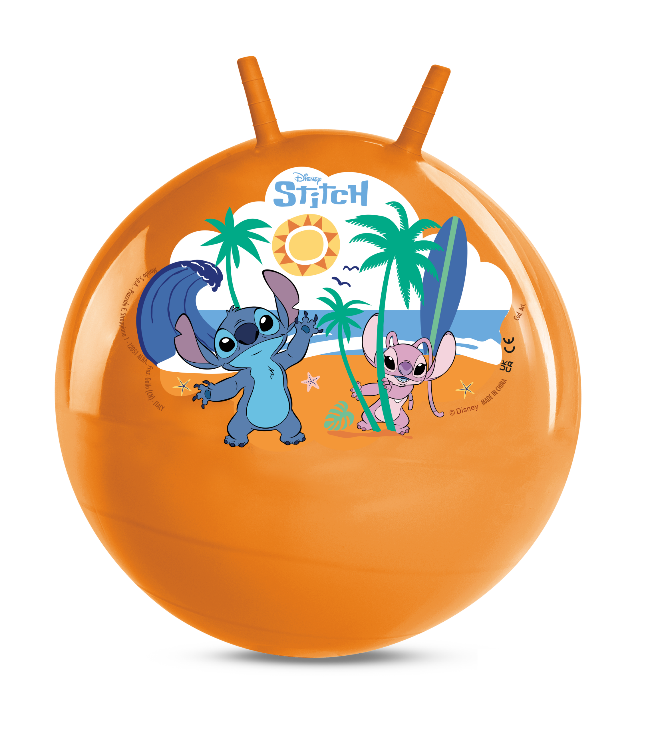 Get little ones moving and bouncing with this vibrant and magical ride-on. The stitch space hopper is the perfect way to turn the back garden or playroom into an arena of active fun. Children can simply climb on, grab the sturdy horn handles, and begin their bouncing adventure. This classic toy provides an excellent outlet for high energy, encouraging kids to jump and hop while staying healthy and active. The bright orange colour and charming graphics of Experiment 626 and Angel on the beach make it an instant favourite for any young fan of the hit animated series.