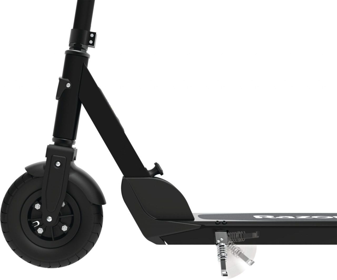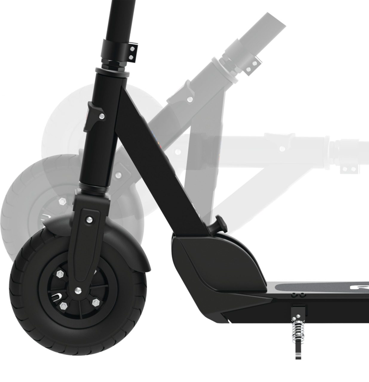 Powered by a high-torque hub motor integrated into the rear wheel, the Razor E Prime Air offers quiet and efficient performance, reaching speeds of up to 15 mph (24 km/h). Acceleration is managed smoothly via a thumb-activated paddle throttle, while braking is controlled by both a thumb-activated paddle brake and a rear-fender foot brake for added safety. Designed with portability in mind, it features Razor’s anti-rattle folding technology for a secure and quiet ride, allowing the scooter to be easily folded down for carrying onto public transport or storing compactly. Adjustable height handlebars ensure a comfortable fit for various rider heights.