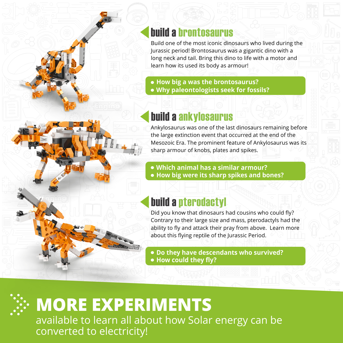 The Engino Dinosaurs Paleontology Kit provides more than just building fun; it delves into the science of paleontology. The included booklet features clear building instructions for multiple dinosaur models and is packed with information about how dinosaurs lived, their characteristics, and the fossil evidence they left behind. The Engino Discovering STEM: Paleontology – Dinosaurs kit stimulates curiosity about natural history, develops construction skills, and encourages imaginative prehistoric play. Unearth knowledge with this engaging Engino Dinosaurs Paleontology Kit.