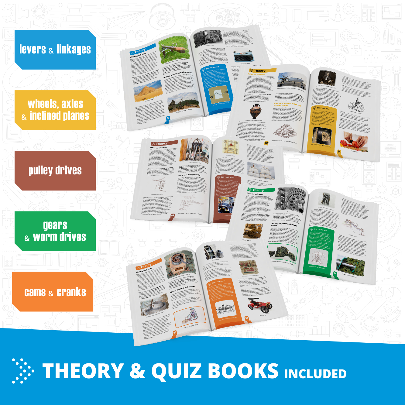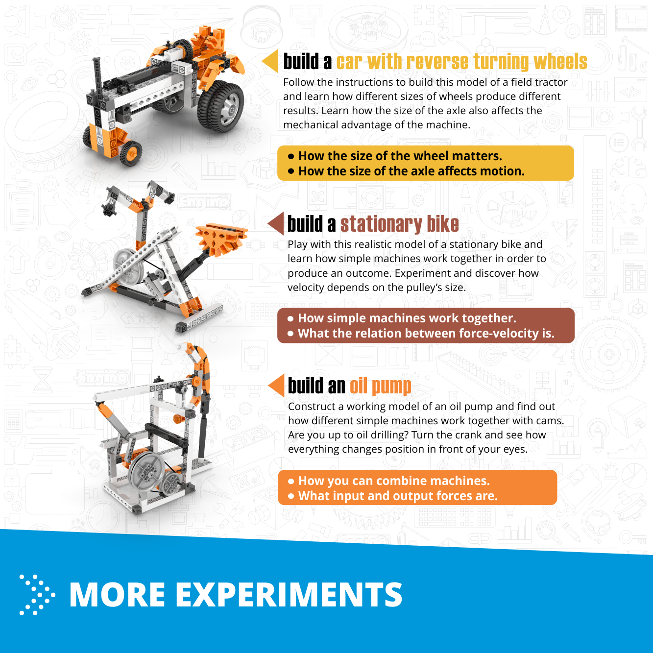 Master the building blocks of mechanics with the comprehensive Engino Discovering STEM: Simple Machines Set! This extensive kit is designed for young engineers aged nine and up, providing an in-depth, hands-on exploration of all types of simple machines that multiply force. Using the versatile Engino building system, children can construct an incredible range of over 60 working models that demonstrate levers, wheels and axles, pulleys, inclined planes, screws, and wedges, plus more complex mechanisms involving gears.