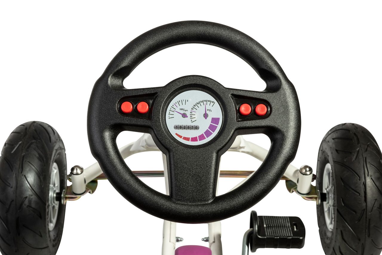 Let young drivers cruise in style with the Ferbedo Go-Kart Air Runner! This charming pedal go-kart features an attractive white frame accented with delightful pink and purple graphics, perfect for children aged approximately 3 to 8 years. Built for fun and durability, it boasts a robust steel frame and high-quality pneumatic air tyres that ensure a smooth, comfortable ride and excellent grip on various surfaces, from garden paths to grassy areas. The Ferbedo Air Runner Go-Kart grows with your child thanks to its adjustable seat, ensuring a comfortable driving position over the years. It includes a freewheel function for safe coasting and an easy-to-use handbrake for reliable stopping. The fully enclosed chain guard adds an extra layer of safety during play. Encourage active outdoor fun and develop coordination with the stylish and sturdy Ferbedo Air Runner Go-Kart.