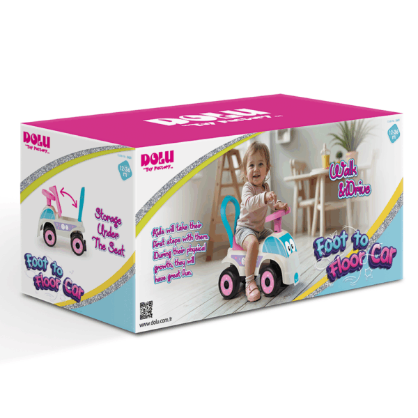 Let your toddler discover the joy of movement with the charming Dolu Foot to Floor Car. Presented in a clean white finish with cheerful pink and blue accents and friendly eye graphics, this ride-on is perfectly suited for little ones aged 12 months and up. Its foot-to-floor design encourages children to use their feet to push off, propelling themselves forward and backward while developing essential motor skills, balance, and coordination. The functional steering wheel allows for directional control, enhancing the driving experience.