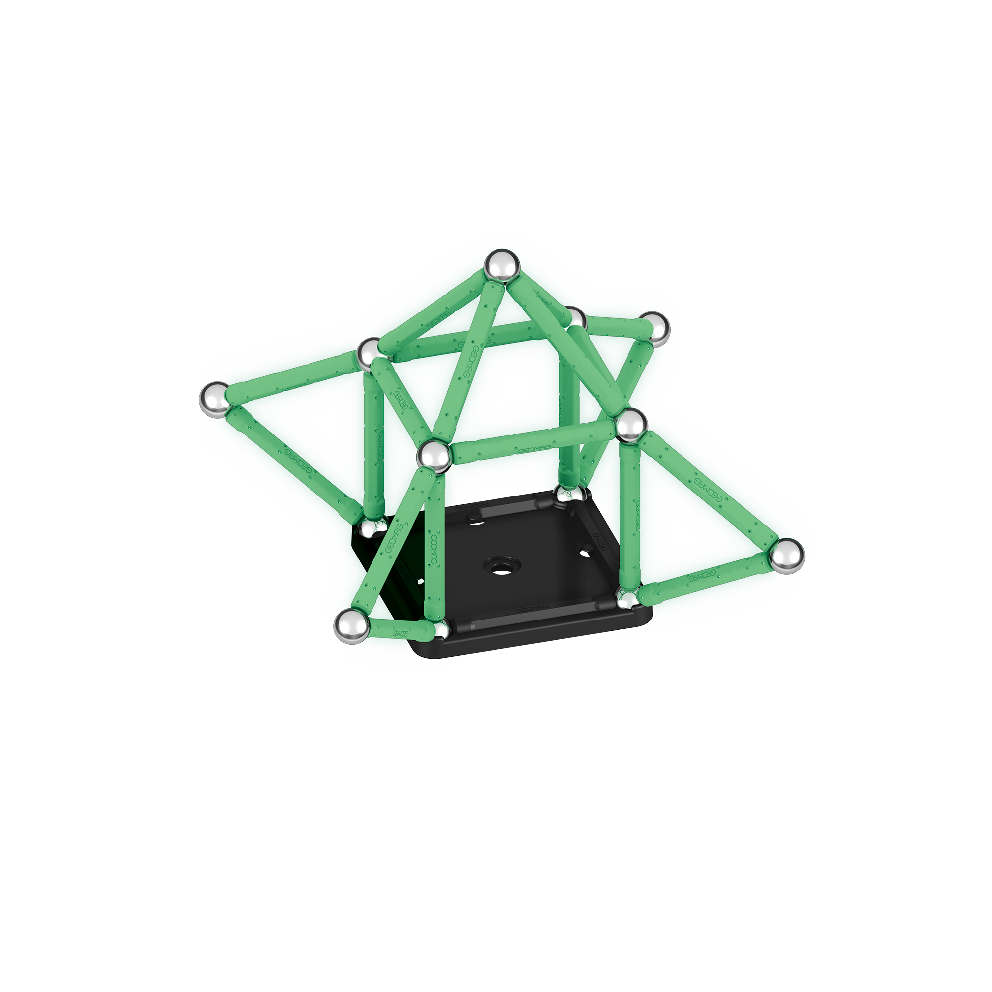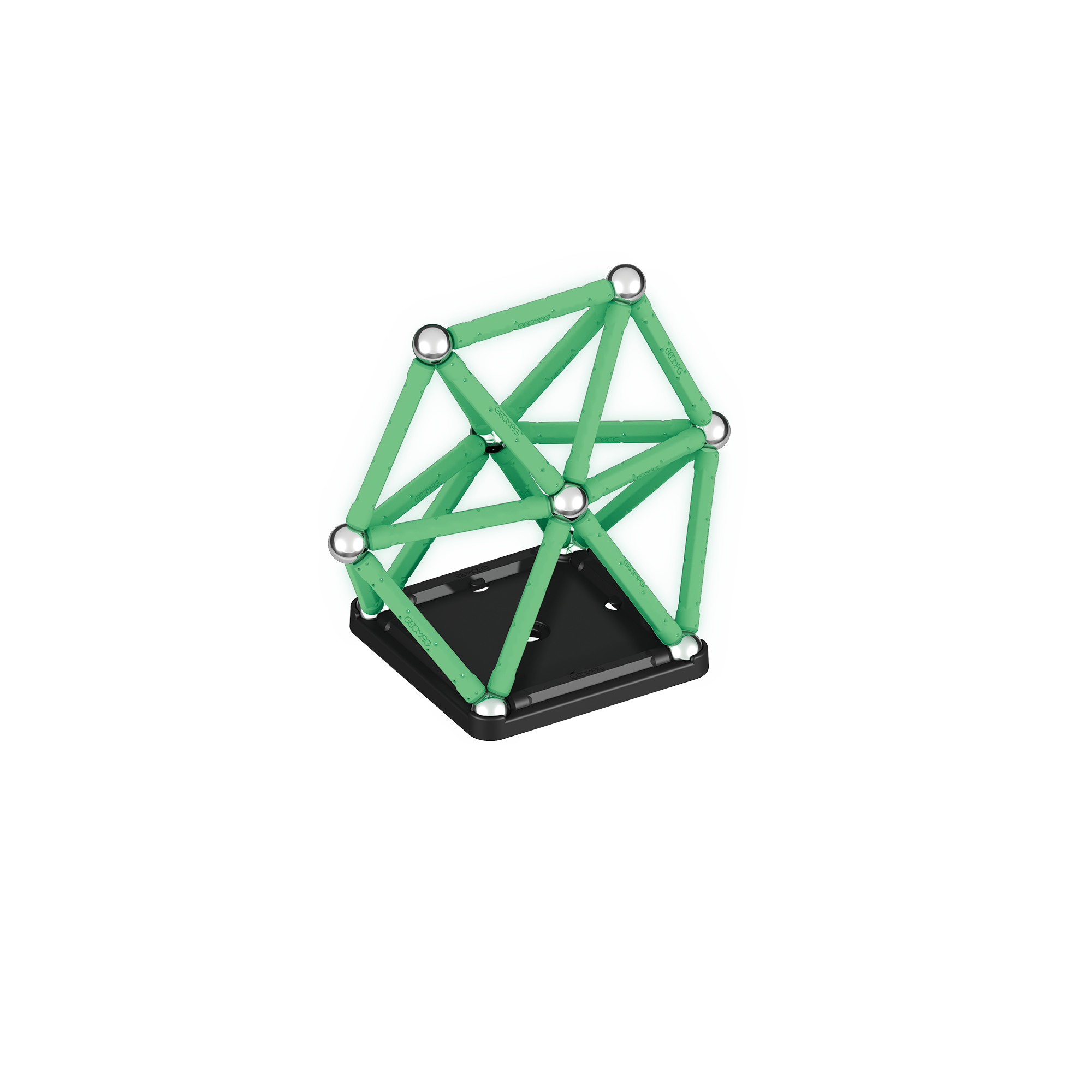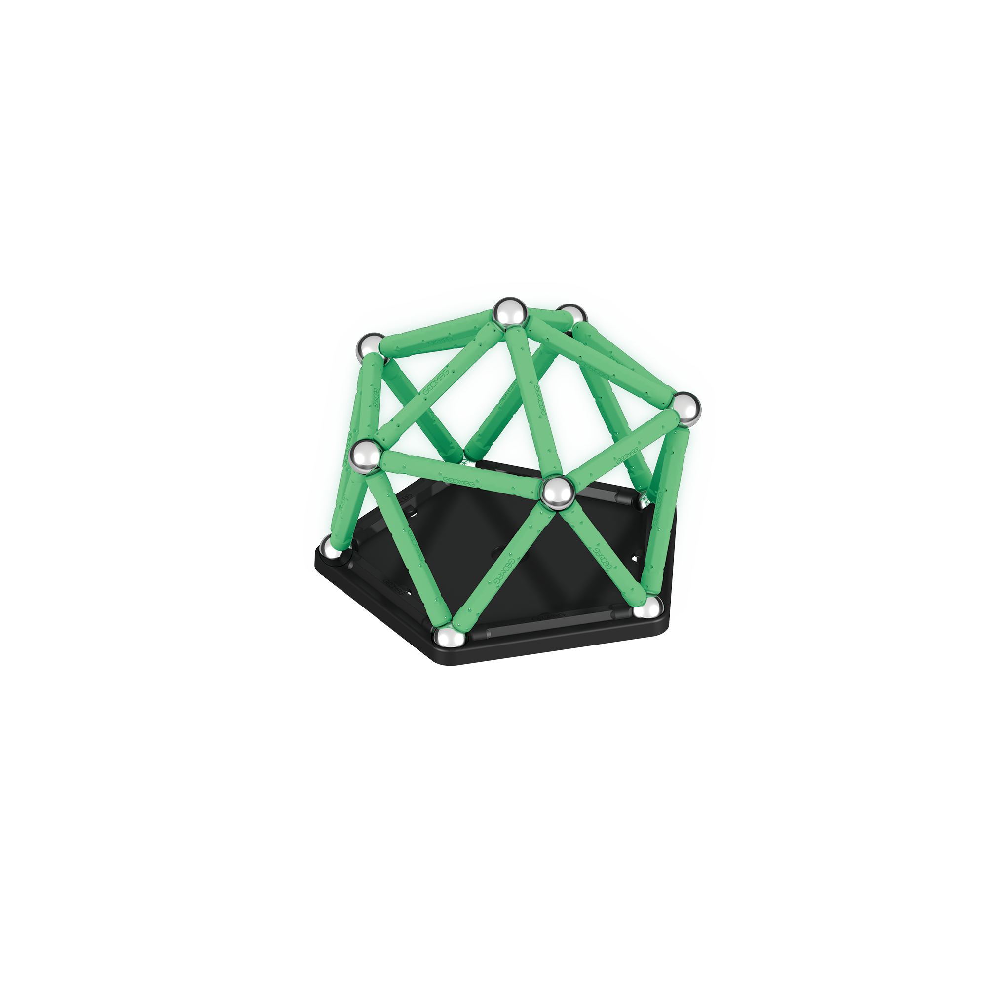 Create luminous structures that shine bright with the Geomag Glow Recycled 42 Pieces Set. This captivating kit features magnetic rods that naturally glow in the dark after absorbing light, combined with steel spheres and a square base panel for enhanced stability. Made from 100% recycled plastic, it offers an eco-friendly approach to imaginative play. The Geomag Glow Recycled 42 Pieces Set allows builders to explore magnetism and geometry by day, and then watch their constructions glow enchantingly at night. Two storage boxes are included for easy organisation.
