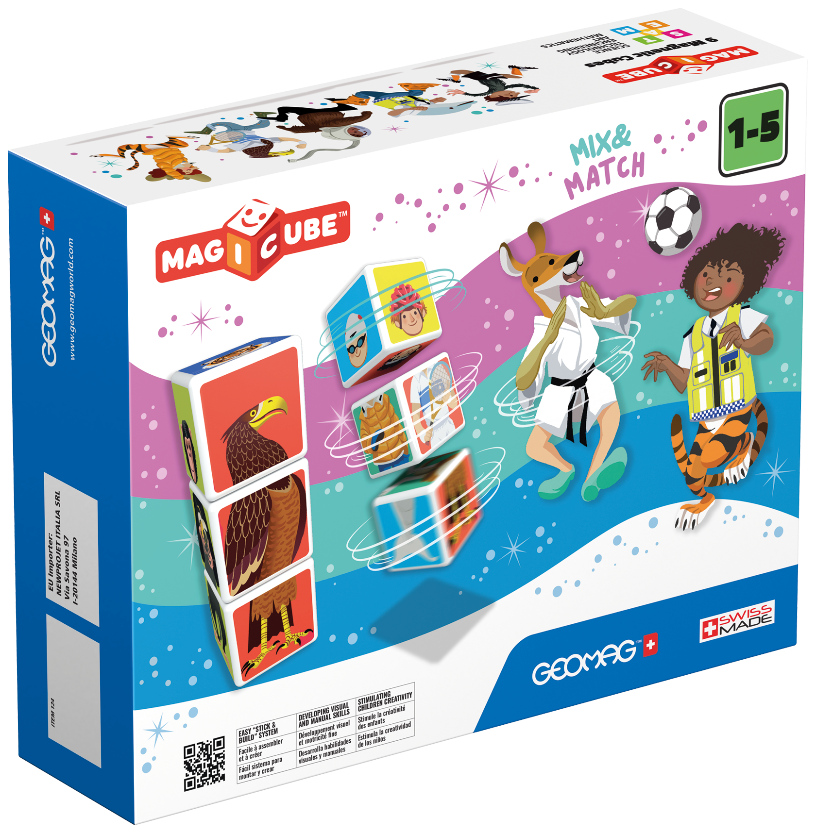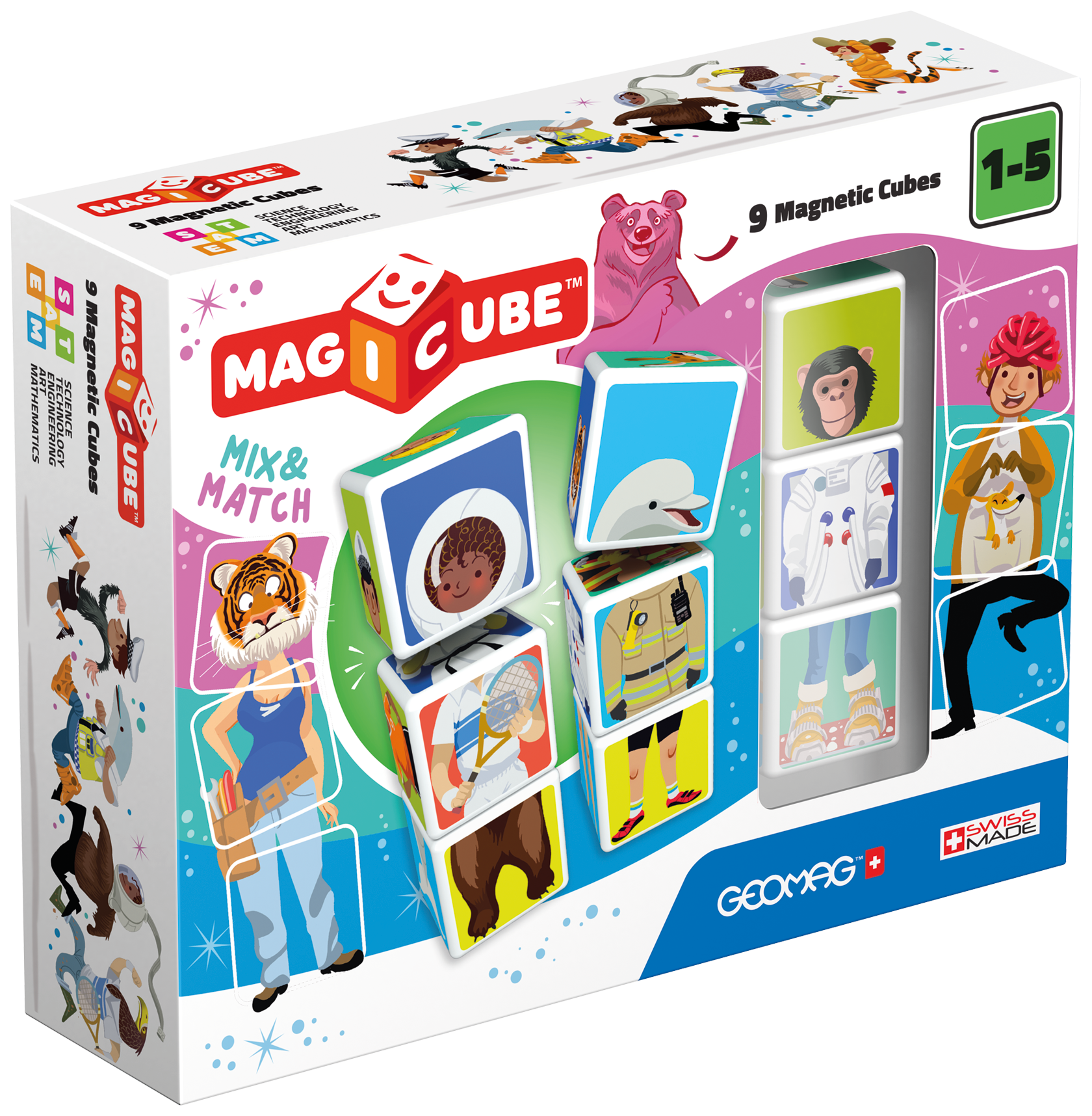 Spark your toddler’s creativity with the wonderfully inventive Geomag Magicube Mix & Match set. This clever toy features 9 magnetic cubes that magically connect on all six sides, making them perfect for little hands to explore. Each cube face has a piece of a character on it—from a tiger and a bear to an astronaut and a diver. The fun is in mixing them all up to create hilarious combinations! The Geomag Magicube Mix & Match system is a brilliant, frustration-free introduction to building and puzzles, and this set is made from 100% recycled plastic, making it a responsible choice for playtime.