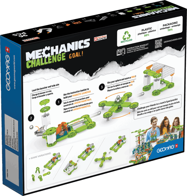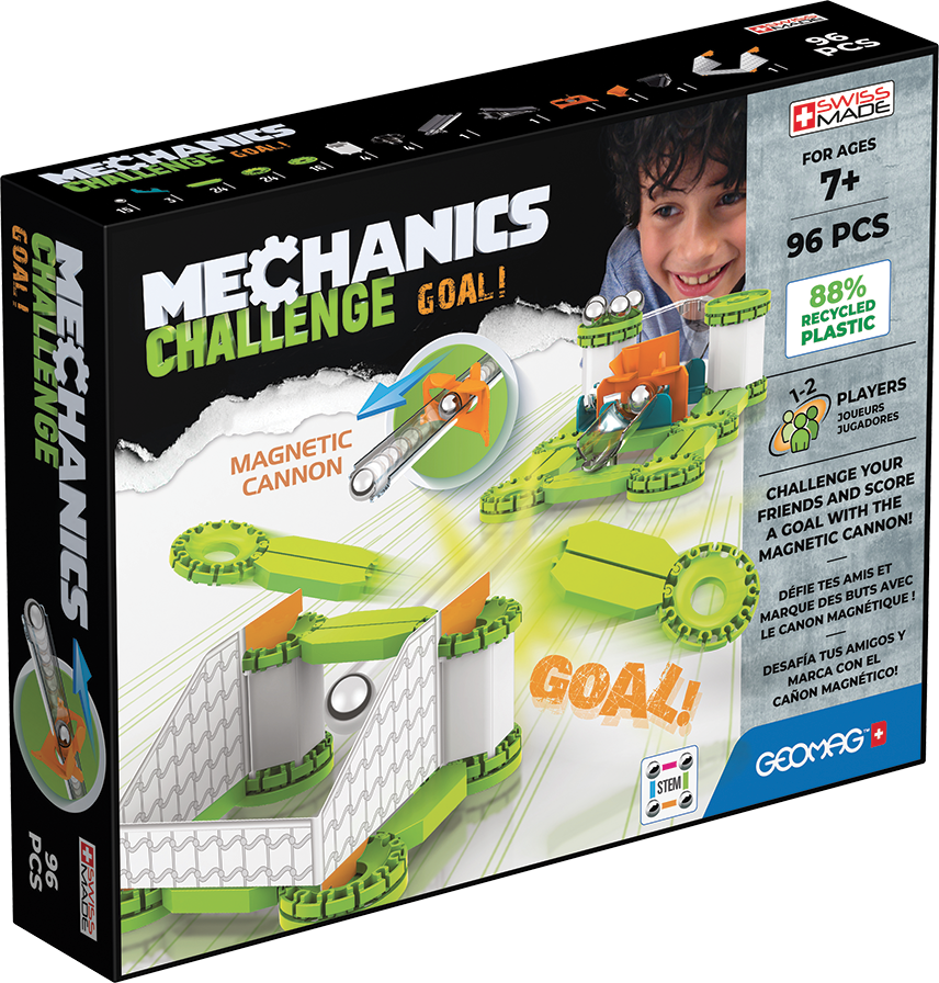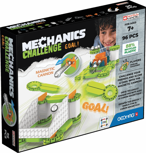 Take on a test of skill with the Geomag Mechanics Challenge Goal 96 Pieces set. This engaging construction kit invites players to build their own magnetic cannon and target goal, then compete to score. Precision, timing, and a steady hand are crucial in this game that cleverly combines the principles of magnetism with mechanical construction. The set provides a fun, interactive way to explore concepts like magnetic fields and chain reactions. It’s a stimulating STEM product designed for one or two players, encouraging friendly competition and developing logic, dexterity, and an understanding of physics.