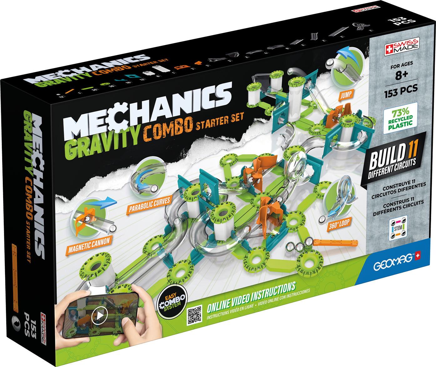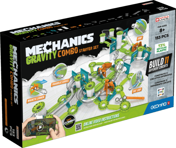 Embark on an exciting journey into the world of magnetic construction and mechanics with the Geomag Mechanics Gravity Combo Starter Set 153 Pieces. This comprehensive kit allows builders to create up to 11 different dynamic circuits, featuring thrilling elements like a 360° loop, jumps, parabolic curves, and a magnetic cannon to propel spheres. By combining classic magnetic rods and steel spheres with innovative mechanical parts, this set harnesses the forces of gravity and magnetism to set creations in motion. The starter set provides a fantastic introduction to physics principles, encouraging creativity, problem-solving, and ingenuity through hands-on, engaging play. Online video instructions offer additional support for building the various circuits.