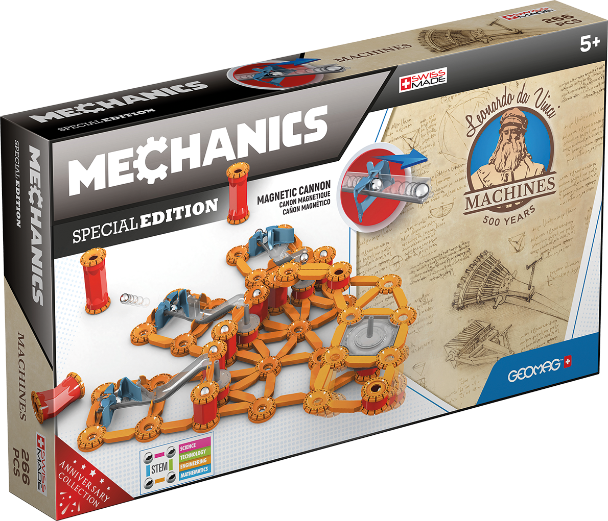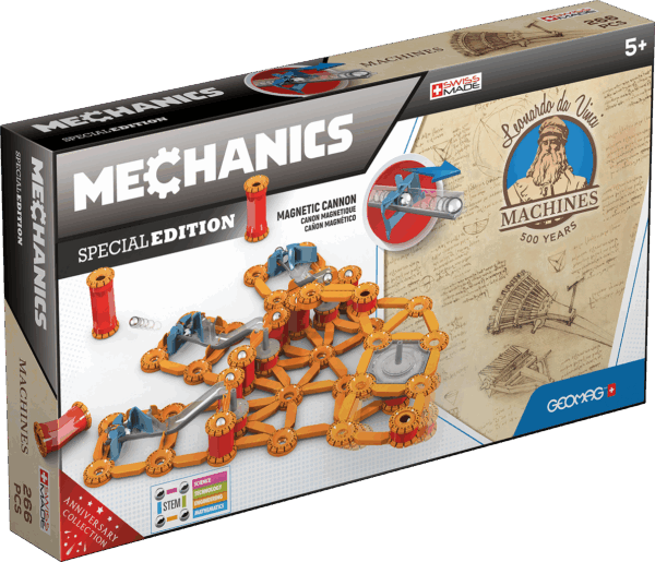 Explore the genius of Leonardo da Vinci with the Geomag Mechanics Leonardo da Vinci Machines Special Edition 286 Pieces set. This advanced construction kit allows builders to recreate some of Leonardo’s incredible inventions, including a Magnetic Cannon and engaging chain reaction mechanisms. Celebrating 500 years of his legacy, this Anniversary Collection set combines the forces of magnetism and mechanical construction to provide a unique and educational building experience. The Geomag Mechanics Leonardo da Vinci Machines Special Edition 286 Pieces set challenges young engineers to discover fundamental principles of physics, engineering, and problem-solving as they assemble complex models. It’s an exceptional way to stimulate an interest in science and history through hands-on play.