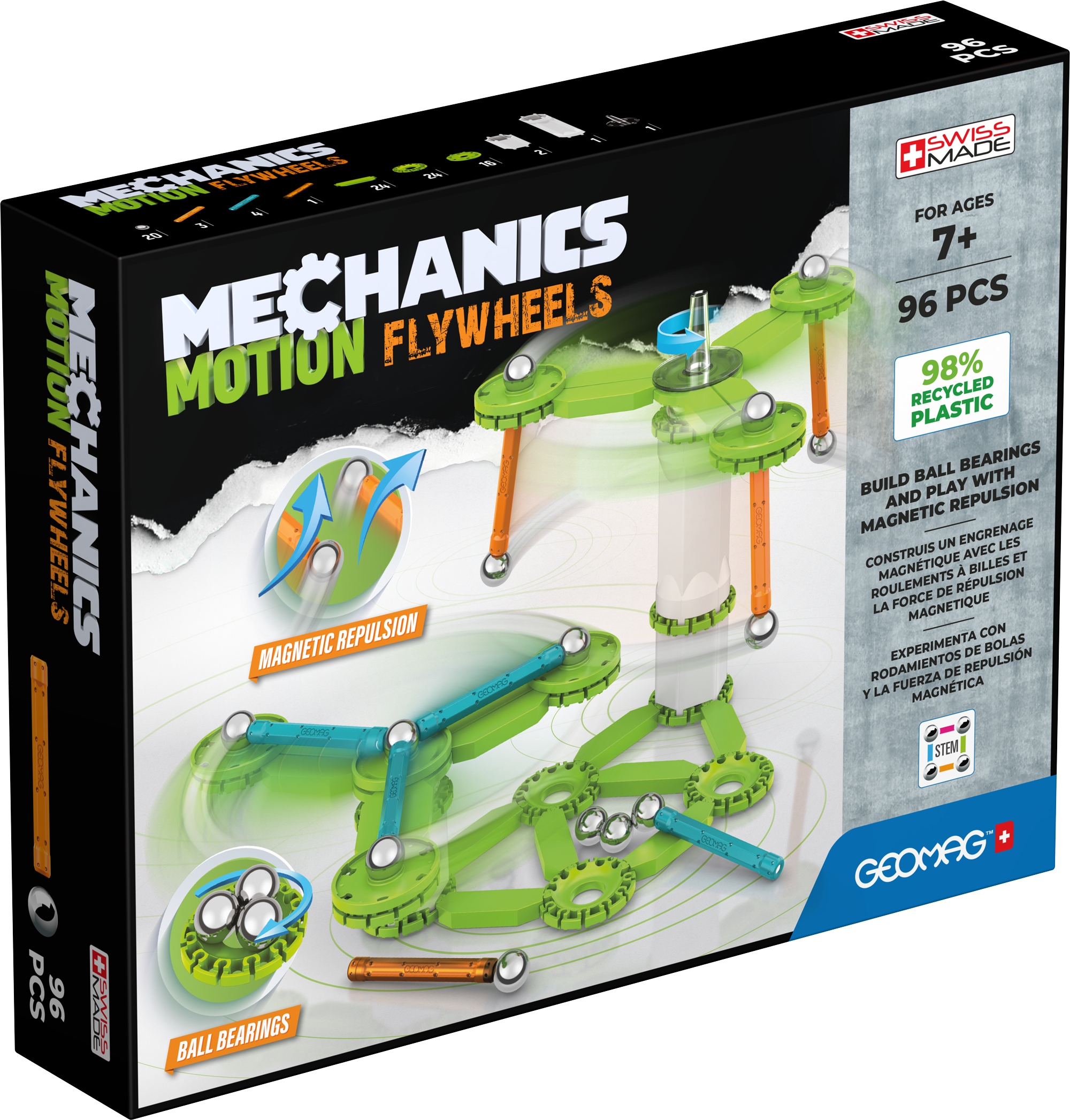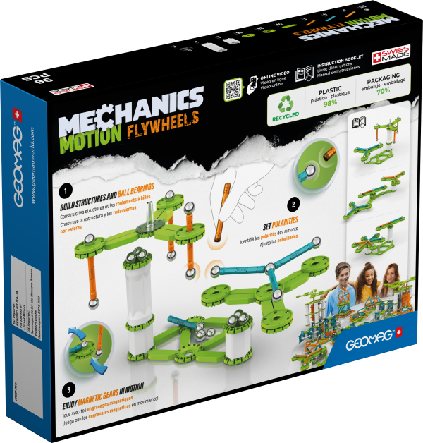 Explore the fascinating world of motion and magnetism with the Geomag Mechanics Motion Flywheels 96 Pieces set. This innovative construction kit allows children to build models that demonstrate the principles of magnetic repulsion and the mechanics of flywheels and ball bearings. By combining magnetic rods, steel spheres, and specialised mechanical components, young engineers can create spinning structures and observe how these unseen forces interact. The set is designed to stimulate creativity and problem-solving skills, offering a hands-on introduction to physics concepts. It’s an engaging STEM toy that encourages experimentation and discovery through building.