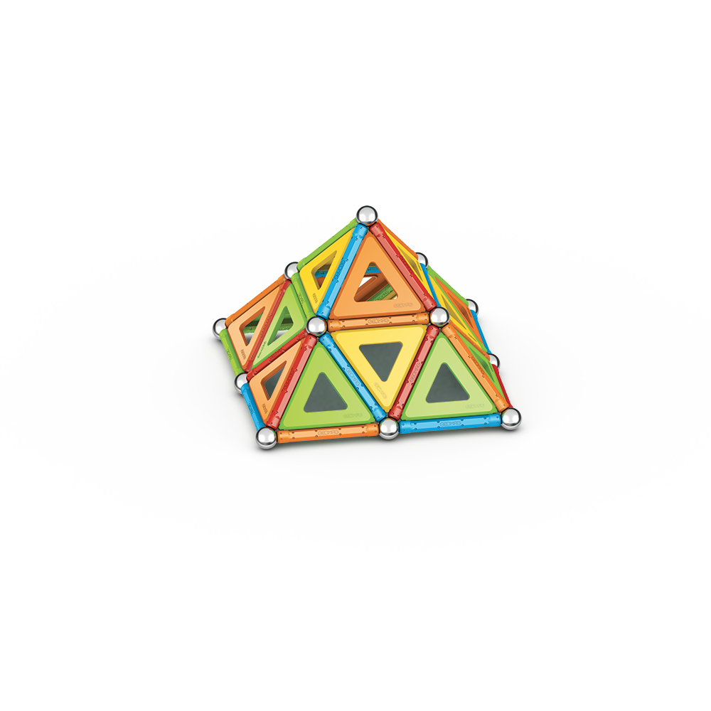 Create vibrant and stable structures with the Geomag Supercolor Panels Recycled 114 Pieces Set. This extensive kit features powerful magnetic rods, steel spheres, and an array of colourful panel pieces in the bright Supercolor palette, all made from 100% recycled plastic. The inclusion of panels allows for more robust and enclosed designs, expanding construction possibilities. The Geomag Supercolor Panels Recycled 114 Pieces Set is designed to stimulate creativity, enhance spatial reasoning, and provide a deeper understanding of geometry and magnetism. Five storage boxes are included for excellent organisation.