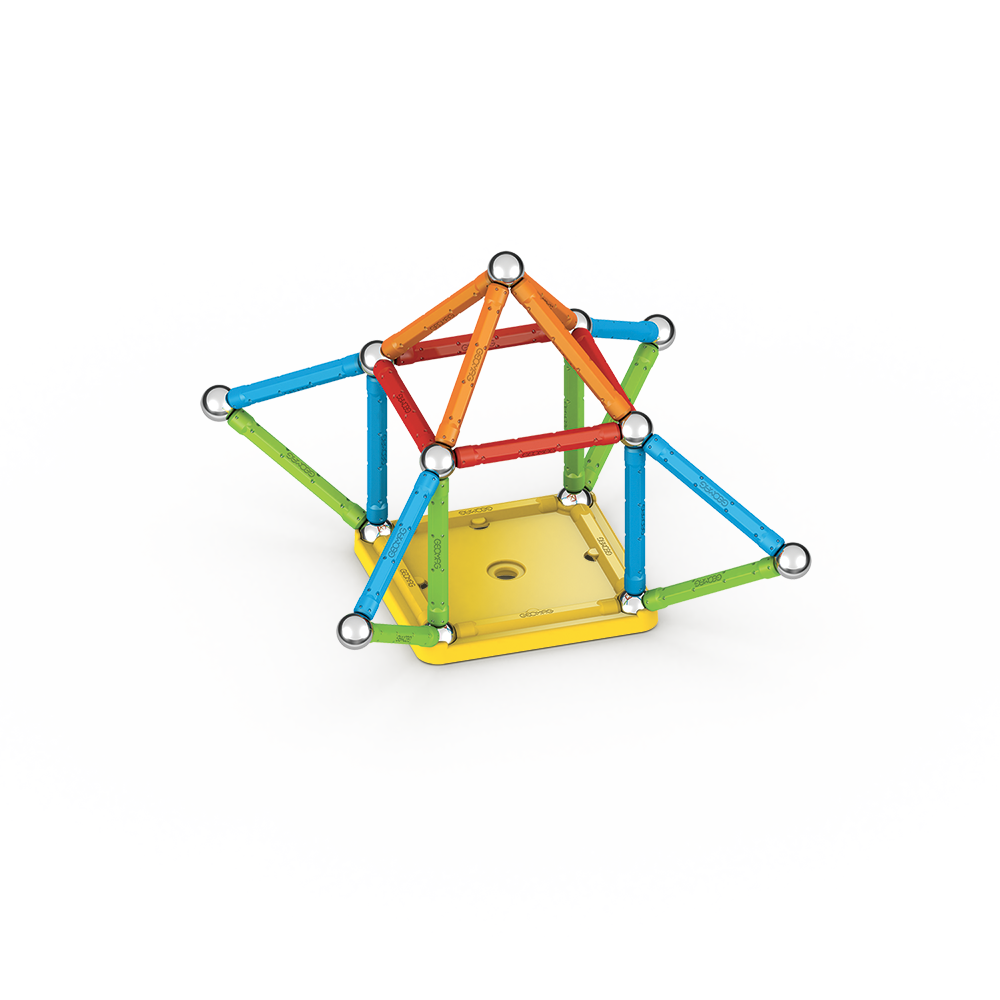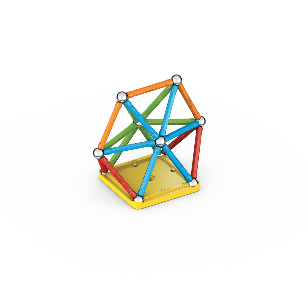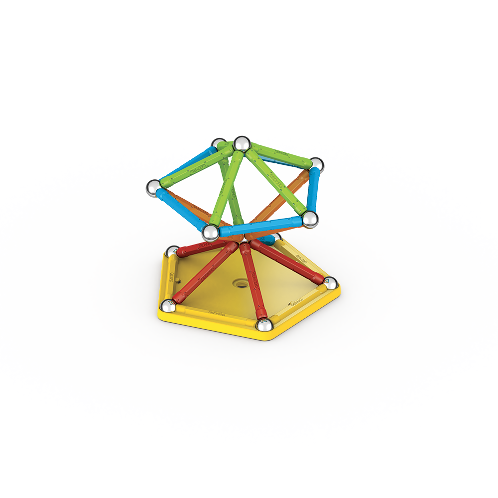 Ignite creativity with the vibrant Geomag Supercolor Recycled 42 Pieces Set. This engaging kit features powerful magnetic rods in an array of bright Supercolor shades, non-magnetic steel spheres, and may include a base panel for stable constructions. Made from 100% recycled plastic, it provides an eco-conscious way to play. The Geomag Supercolor Recycled 42 Pieces Set is perfect for building various 2D and 3D models, helping to develop spatial awareness and an understanding of magnetic principles. Two handy storage boxes are included for keeping pieces organised.