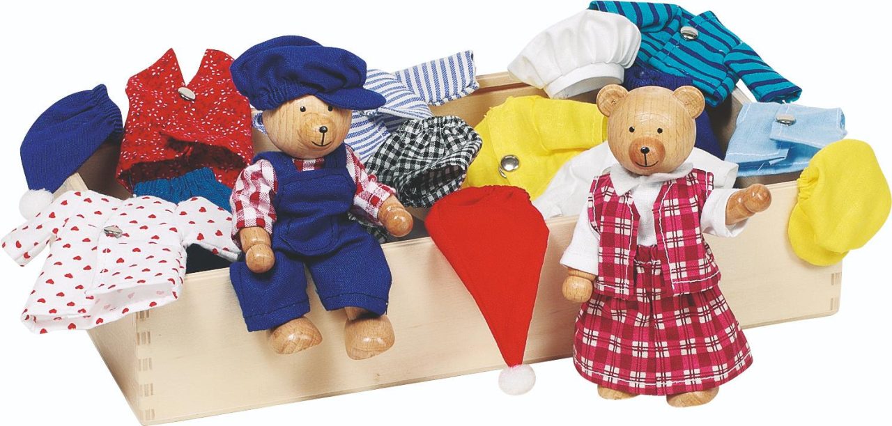 Get ready for endless fashion fun with the Goki Flexible Puppets – Bear Dress-up Box. This wonderful set features two posable wooden bears, Benna and Bennoh, and a wooden box overflowing with clothes and accessories for every occasion. From pyjamas for bedtime stories to smart hats for a day out, children will love mixing and matching the outfits. This set is fantastic for encouraging imaginative play and storytelling, while the act of dressing and undressing the dolls is a great way to practice dexterity.