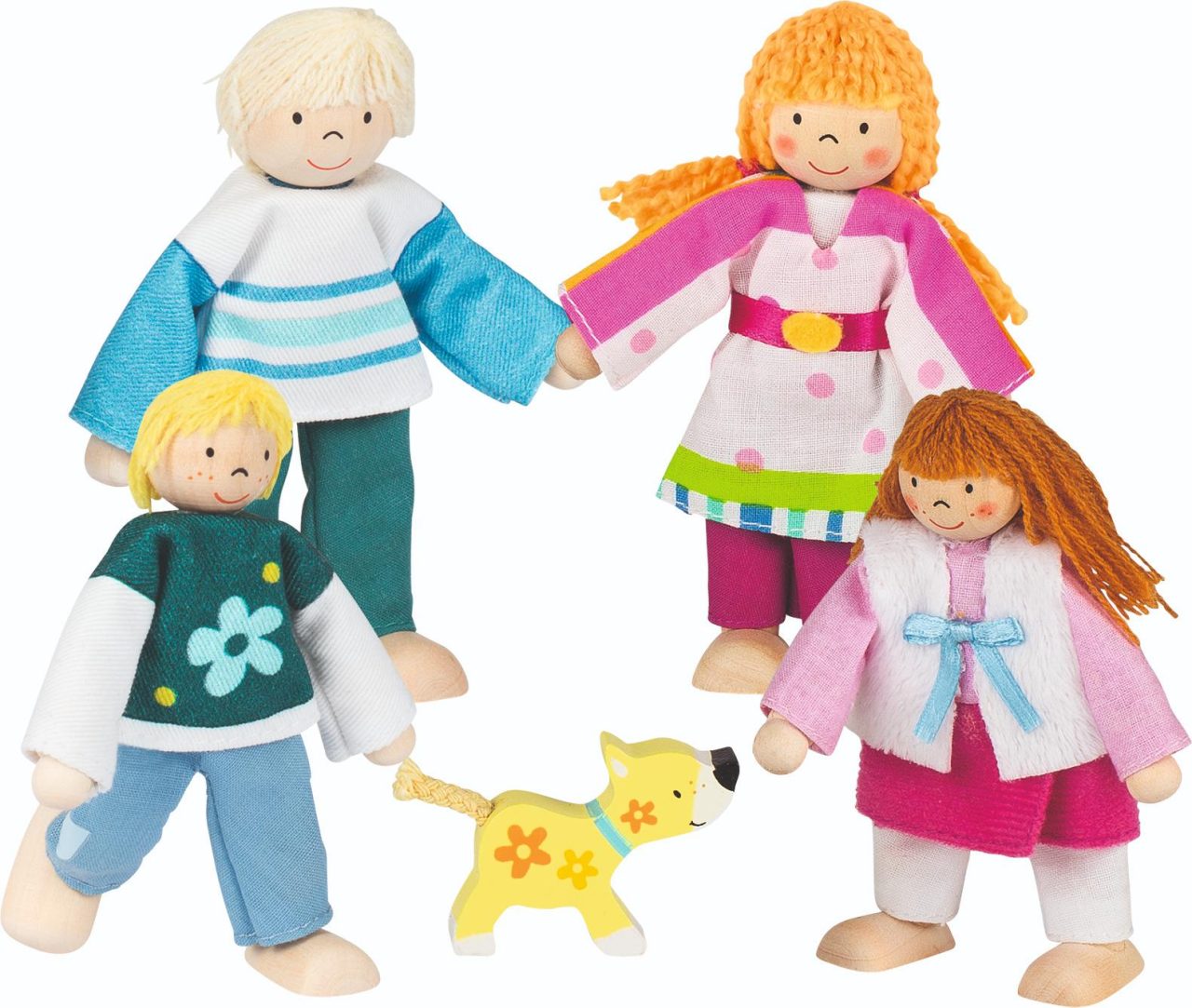 Meet the wonderfully colourful Susibelle Family from Goki. This cheerful set of flexible puppets includes a mother, father, son, and daughter, plus their adorable little yellow dog. Each doll is crafted with a wooden head, hands, and feet, and features a soft, posable body that allows them to sit and stand, ready for any adventure. Dressed in vibrant, detailed outfits, the Susibelle Family is perfectly scaled to fit in any Goki doll’s house, bringing a world of imaginative play to life.
