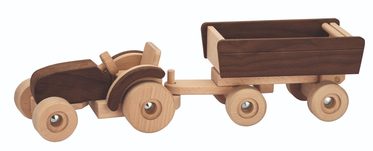 Get to work on the farm with the beautiful Goki Nature – Tractor with Trailer. Crafted entirely from high-quality, untreated European beech wood, this toy showcases the natural beauty of light and dark wood tones. The set includes a robust, steerable tractor and a detachable trailer with a functional tipping feature, perfect for imaginative farm play. Built to last, the Goki Nature – Tractor with Trailer is a timeless, eco-friendly toy that encourages hours of creative small world adventures.