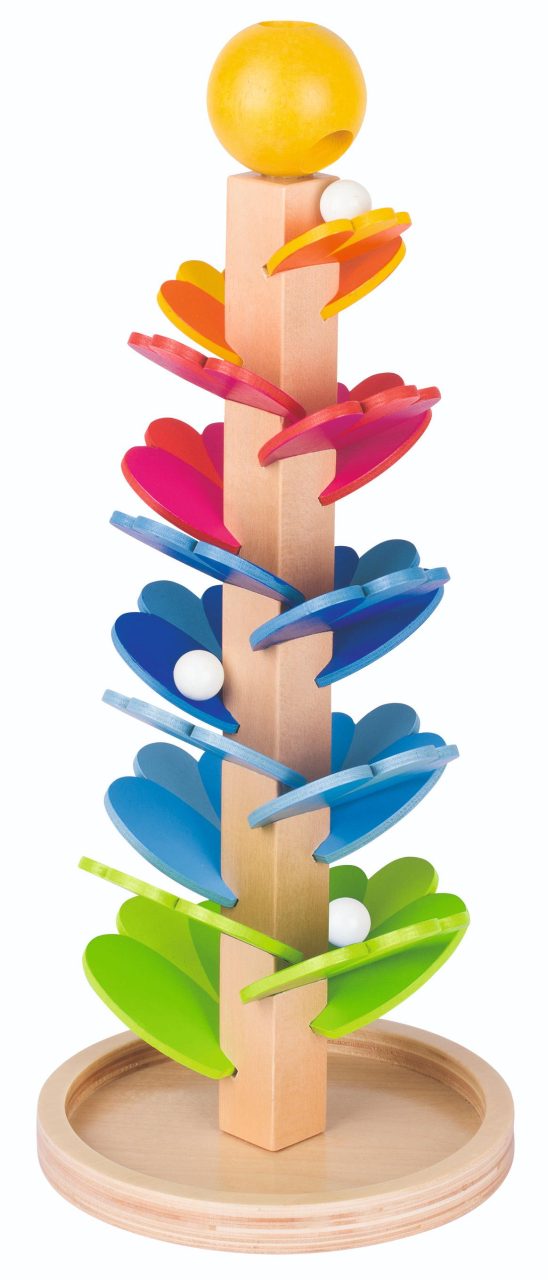Experience a beautiful cascade of sound and colour with the Goki Pagoda Marble Game. This enchanting wooden sound tree features a tower of vibrant, rainbow-coloured leaves. As you drop the marbles from the top, they travel down the pagoda, striking each leaf to create a series of delightful, gentle tones. The Goki Pagoda Marble Game is a wonderful sensory toy that is both visually mesmerising and sonically pleasing, providing a calming and engaging activity for children.