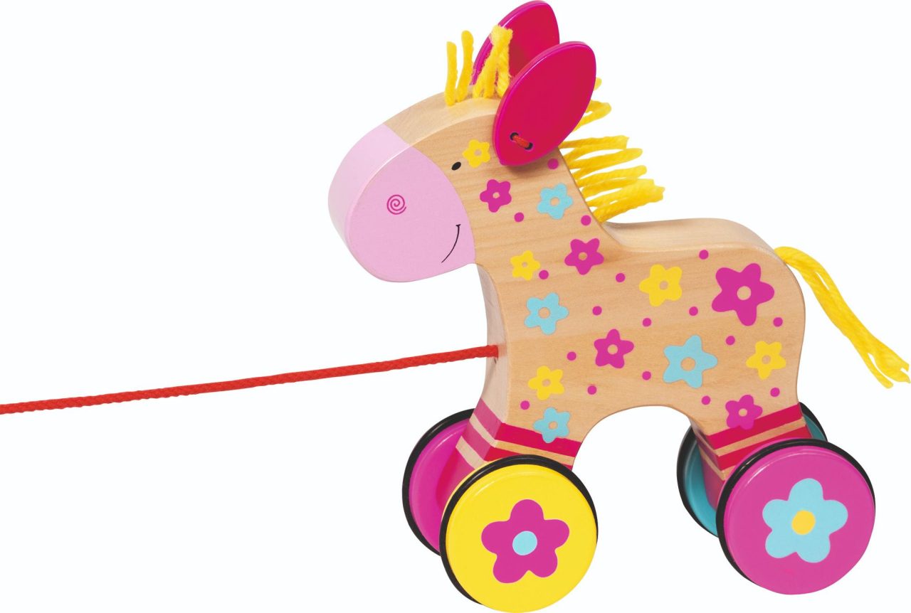 Add a splash of colour to playtime with the Goki Pull-along Horse Clahra. This cheerful wooden horse is decorated with bright flowers and features a soft yellow yarn mane and tail, making it a wonderful friend for toddlers. With its decorated wheels and sturdy red cord, Clahra is always ready to trot along behind your little one on their walking adventures. It’s a fantastic companion for encouraging active play and helping to build confidence and coordination as they find their feet.