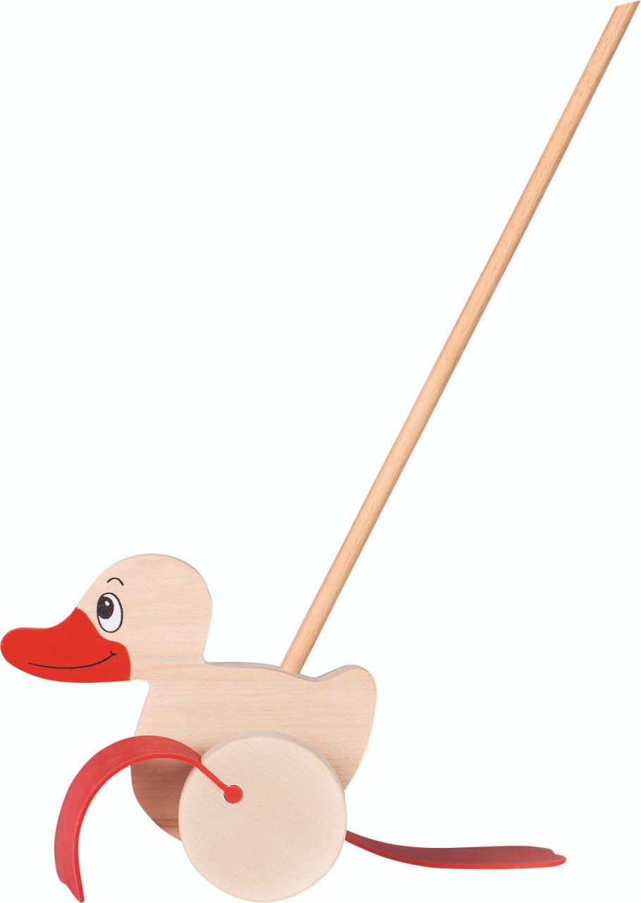 Encourage your toddler to get steady on their feet with the classic Goki Push-along Duck. This charming wooden toy is a wonderful walking companion for little ones. As your child pushes the duck along, the clever red rubber flippers on the wheels create a fun, waddling gait that is sure to delight them. With a long wooden handle for support, the Goki Push-along Duck makes practising walking a fun and rewarding activity.