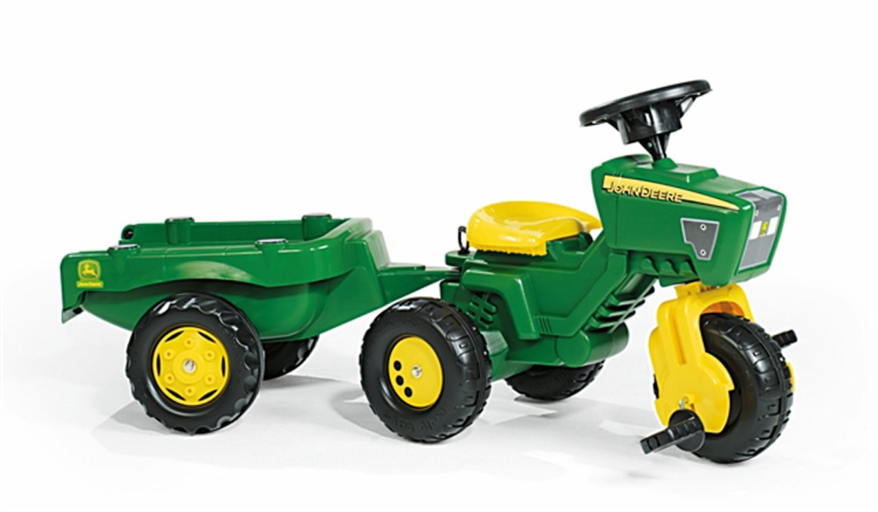 The Rolly Toys John Deere Trio Trac is a versatile three-wheeled pedal ride-on that promises endless adventures for children aged approximately 2.5 to 5 years. This innovative trike features an electronic steering wheel with sound effects, adding an extra layer of interactive fun to playtime. Authentically styled in John Deere green and yellow, it comes complete with a matching detachable trailer, perfect for towing favourite cargo around the garden. Built for durability and safety, the John Deere Trio Trac encourages outdoor exploration and helps develop coordination as children drive, steer, and play.