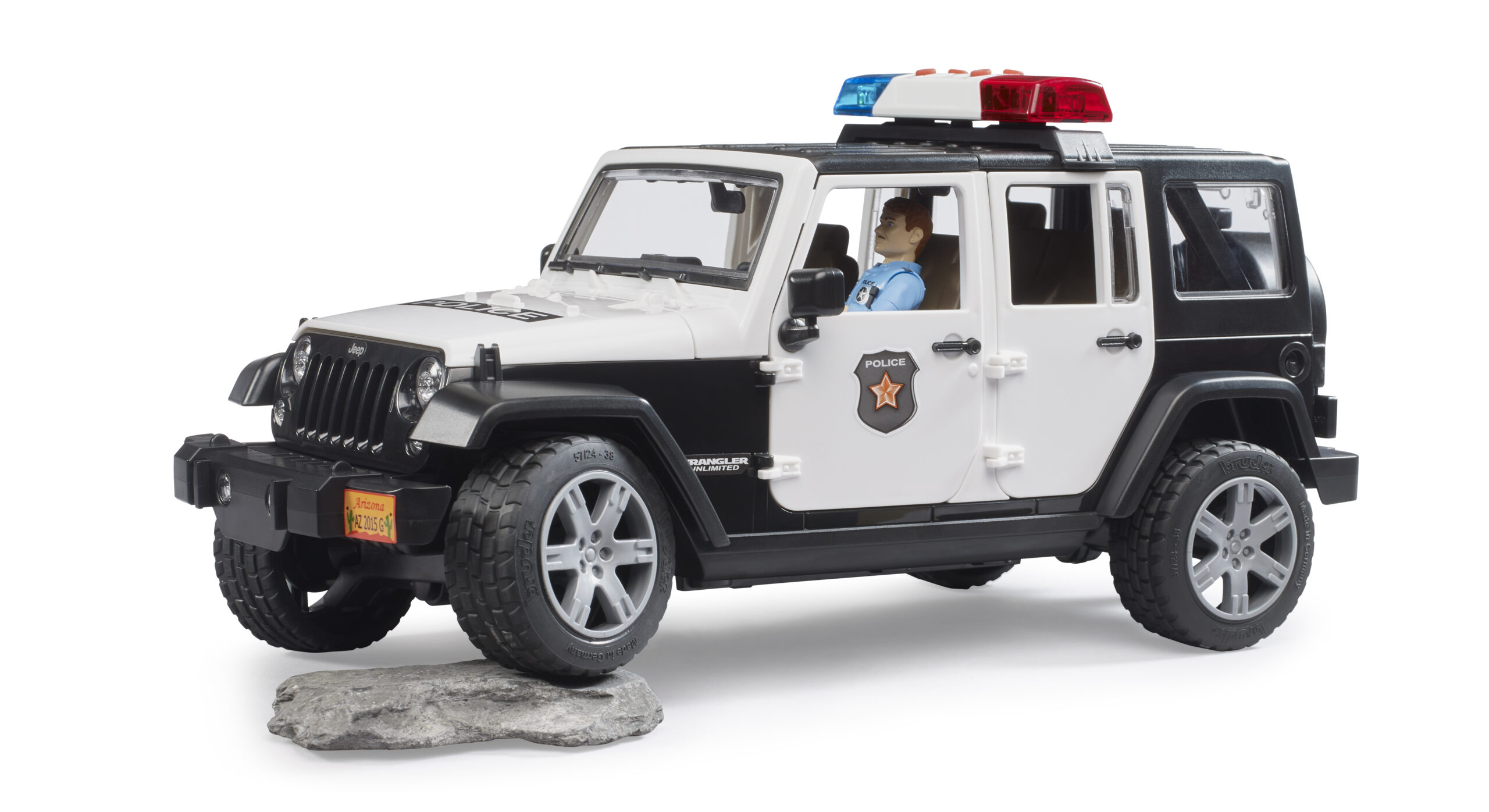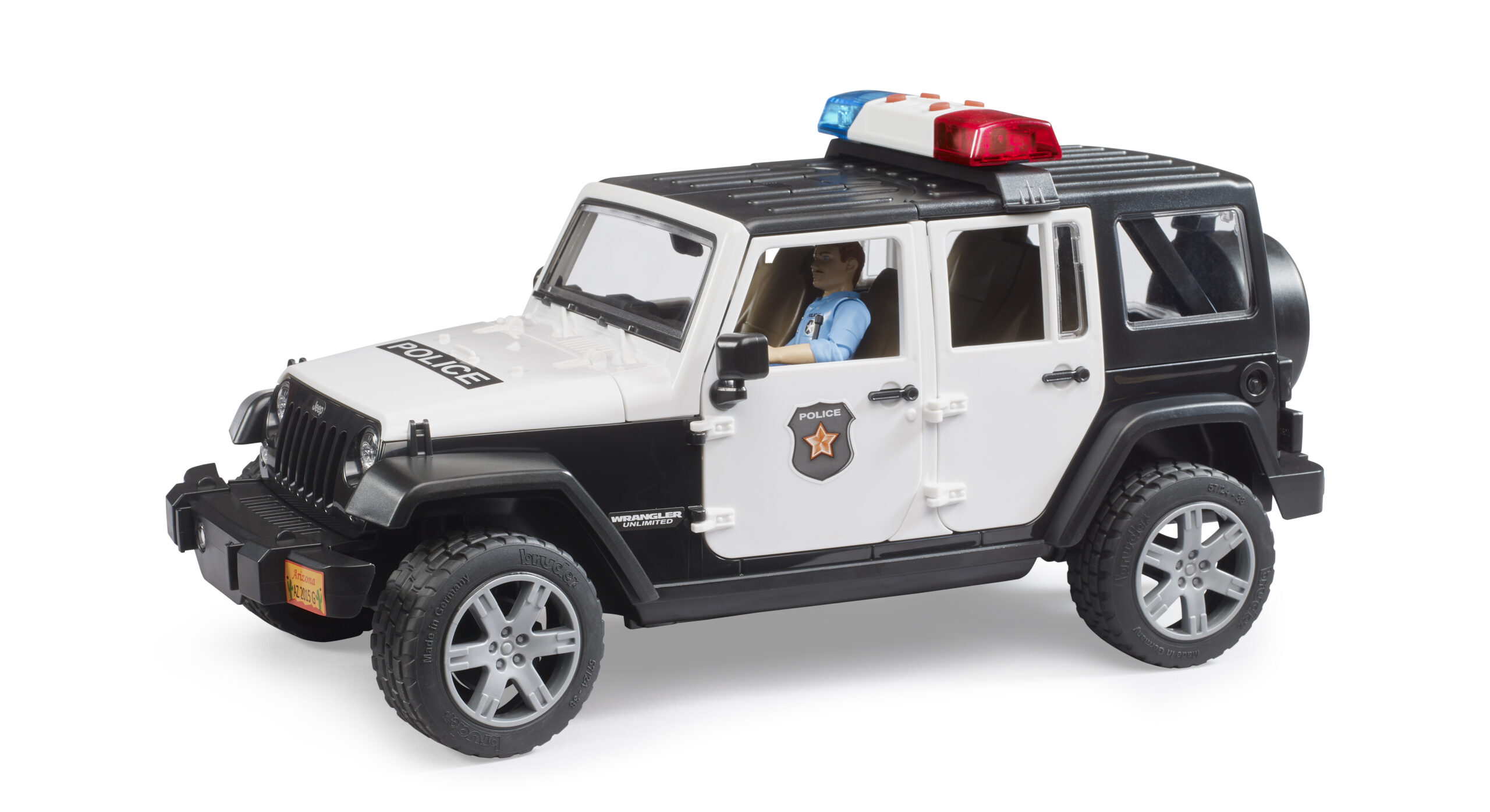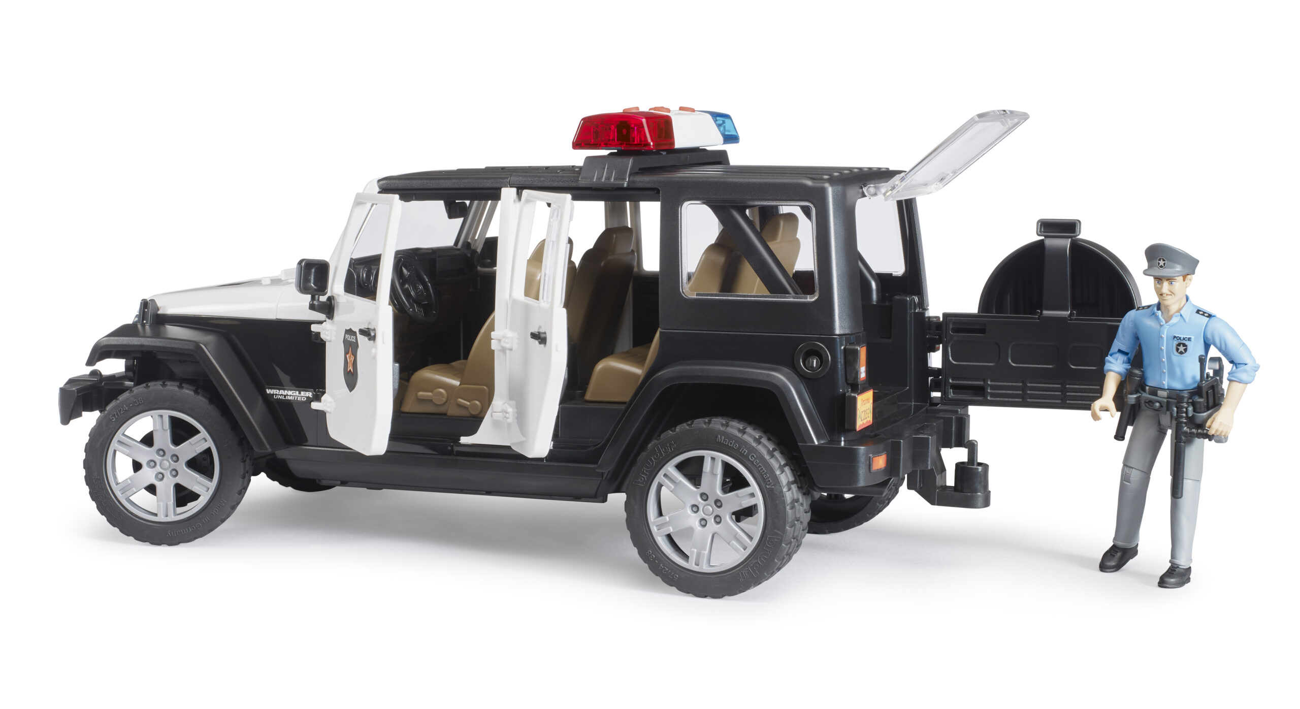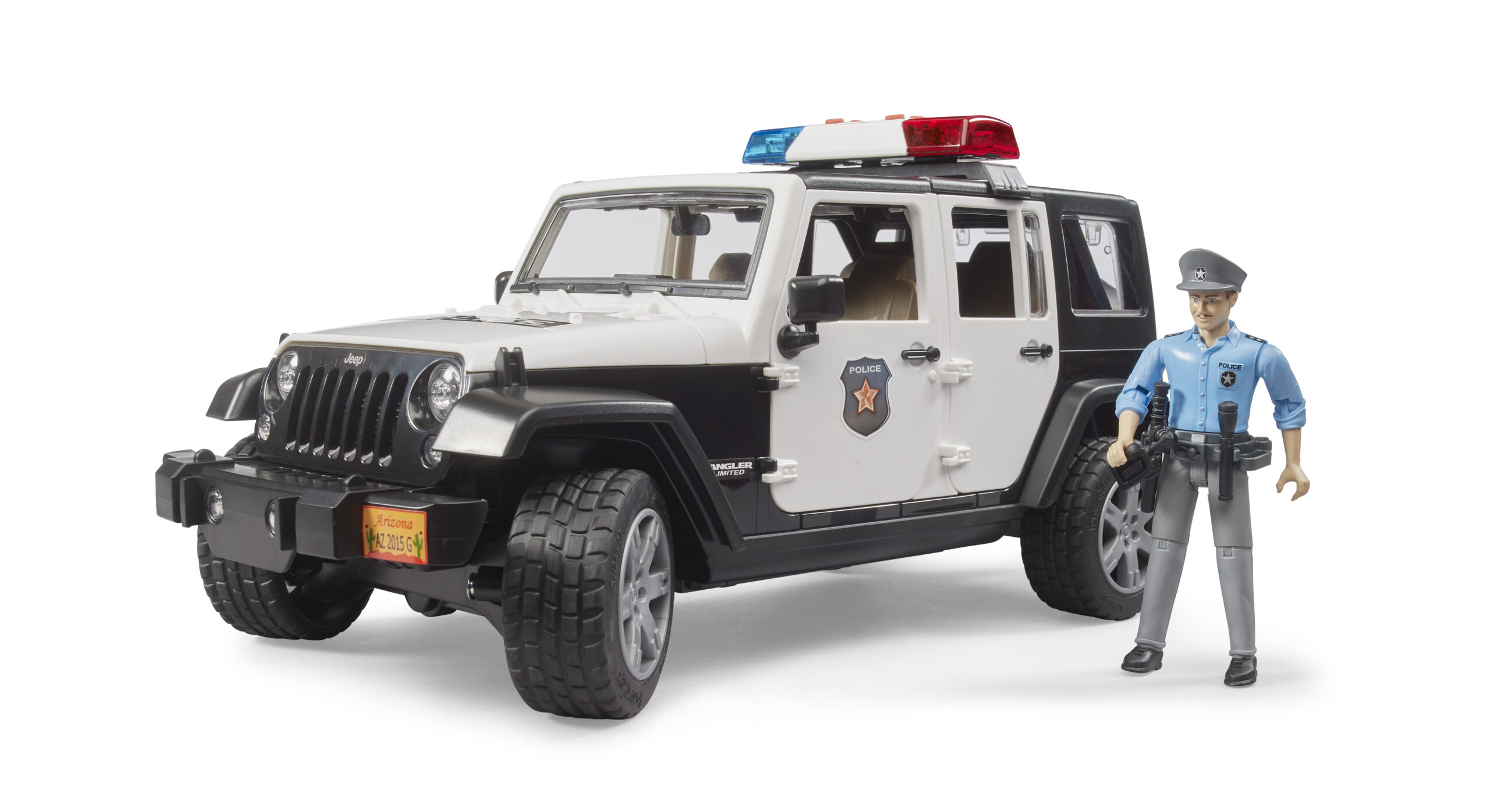 Law enforcement off-road has never been more exciting with this highly detailed emergency vehicle. The jeep wrangler police cruiser is designed for active duty on any terrain, featuring a spring-loaded front and rear axle that handles bumps and jumps with ease. The driver’s cab is fully accessible, with four opening doors and a split rear tailgate that opens to store essential gear. Included in this set is a fully articulated police officer figure, equipped with a belt, holster, and accessories to handle any situation. Young officers can even steer the jeep wrangler police vehicle using the additional steering column hidden in the vehicle floor, which inserts through the roof for precise control during high-speed chases in the playroom or garden.