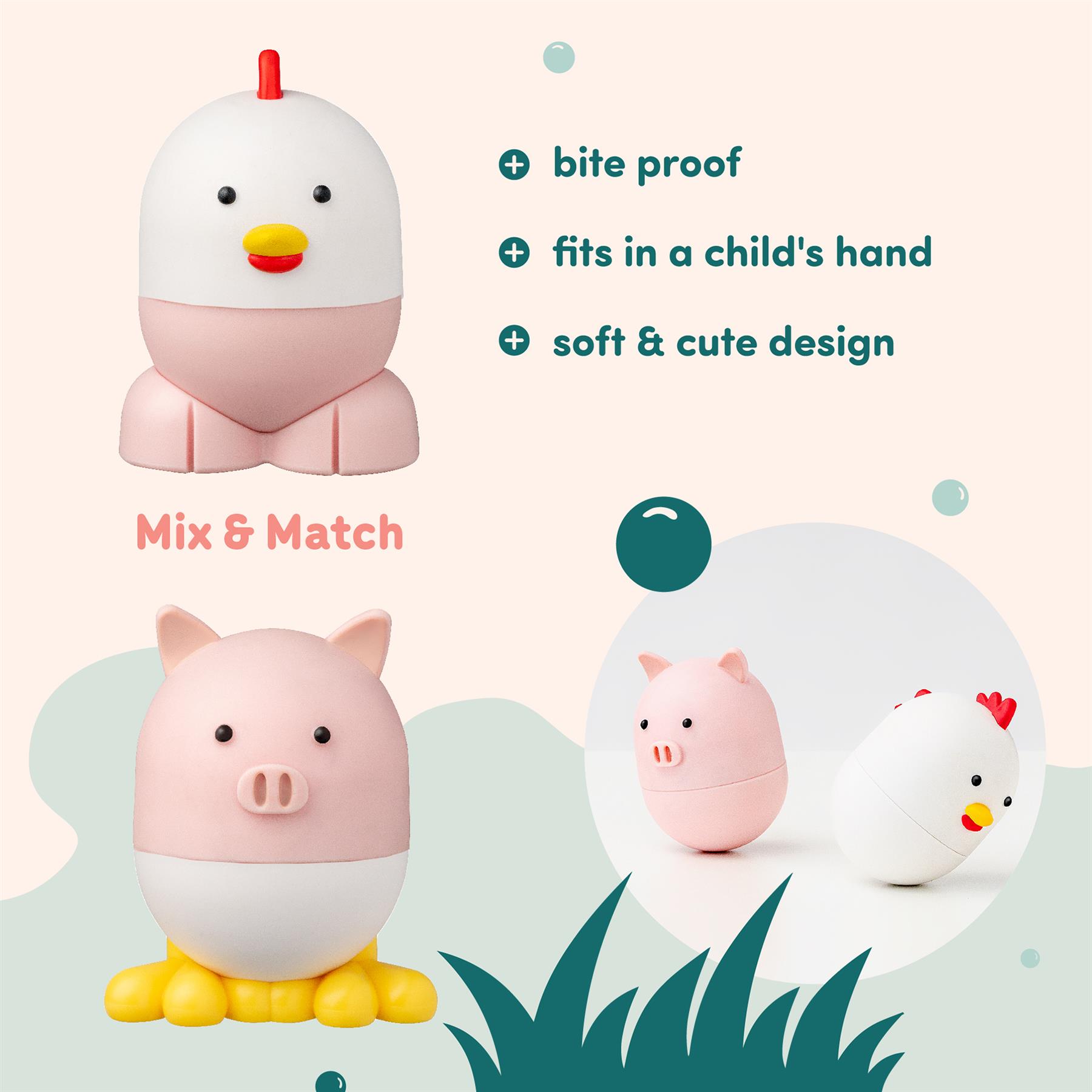 Includes: 1x Chicken (2 magnetic halves), 1x Pig (2 magnetic halves)