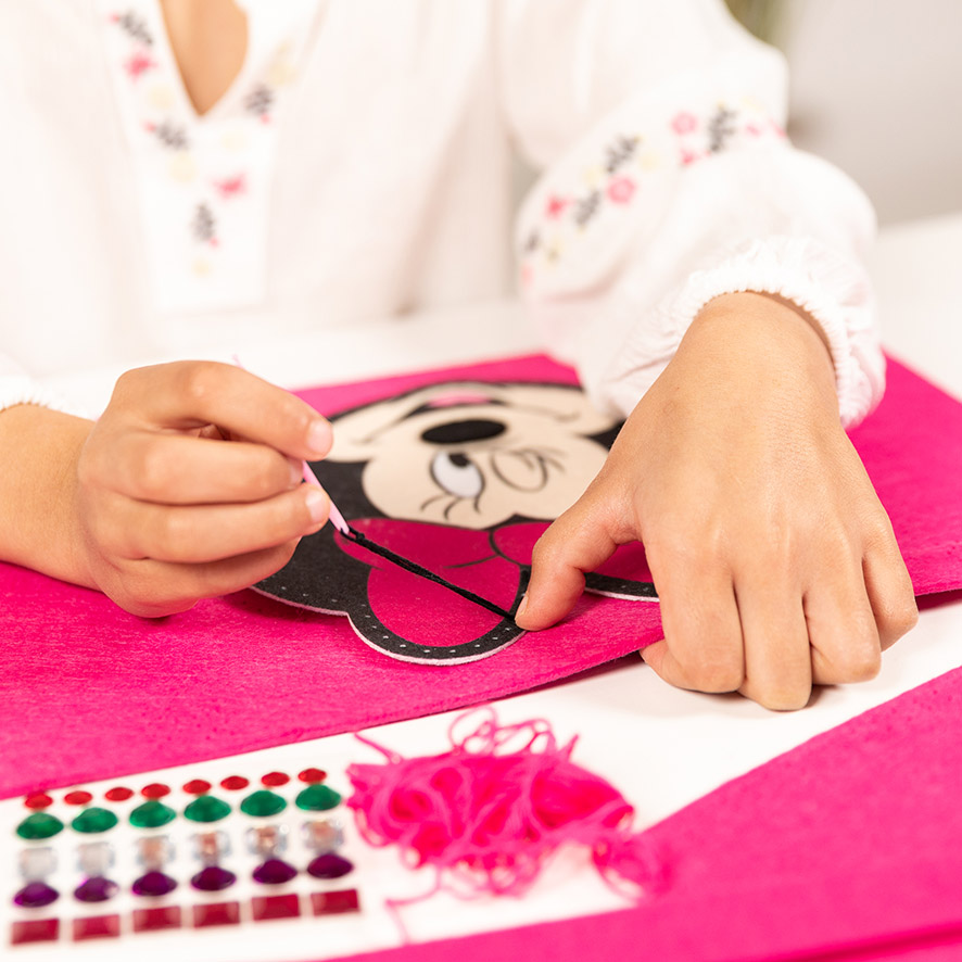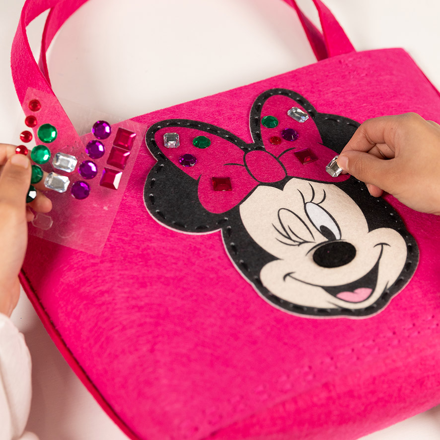 The creative fun continues with the decoration. The kit includes a classic Minnie Mouse appliqué, ready to be brought to life with sparkly sequins and gems. With this complete Minnie Mouse felt bag kit, it’s simple to create a unique, handmade accessory. The finished bag is perfect for showing off a bit of personal style and makes a fantastic, practical gift.