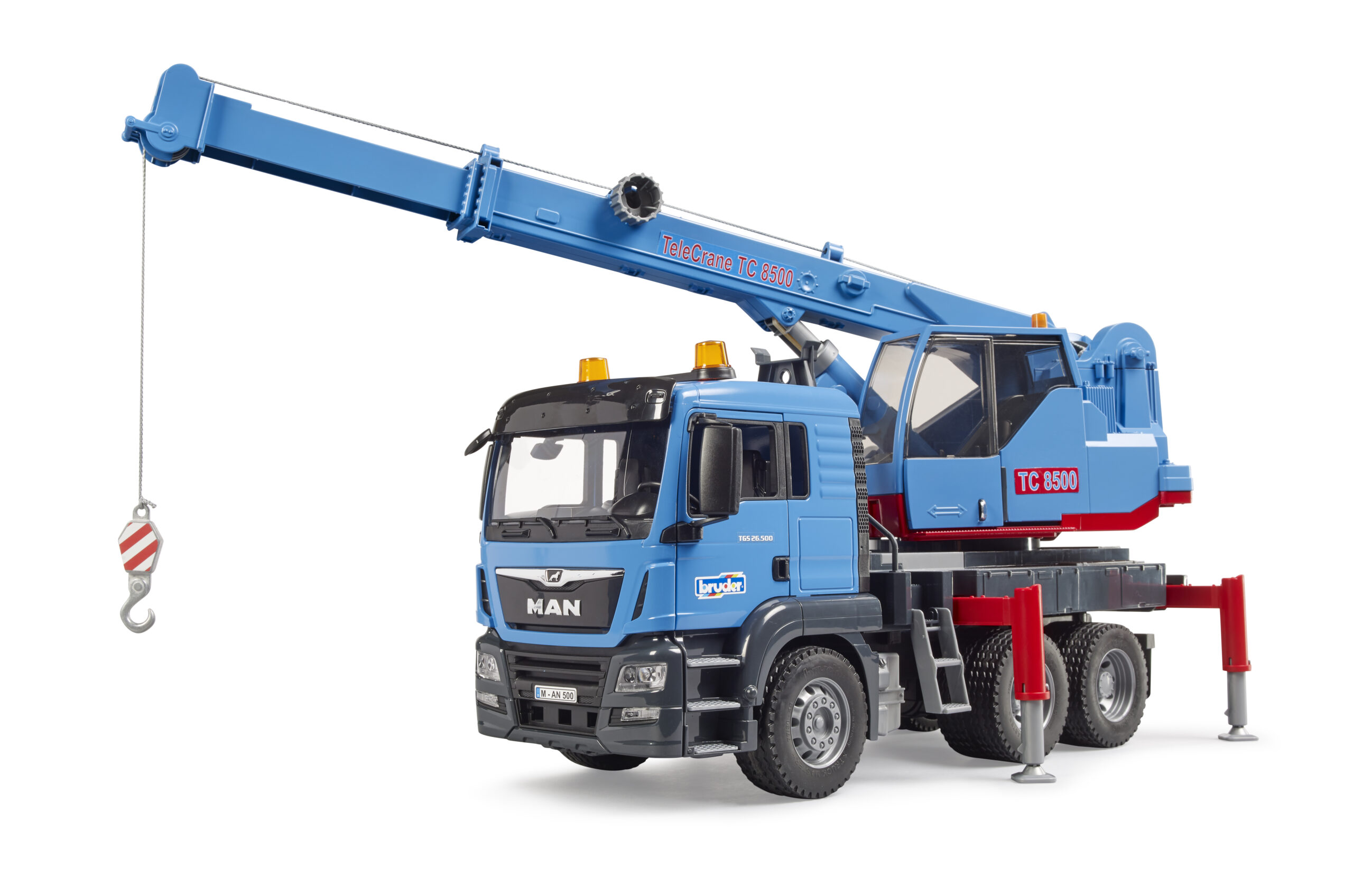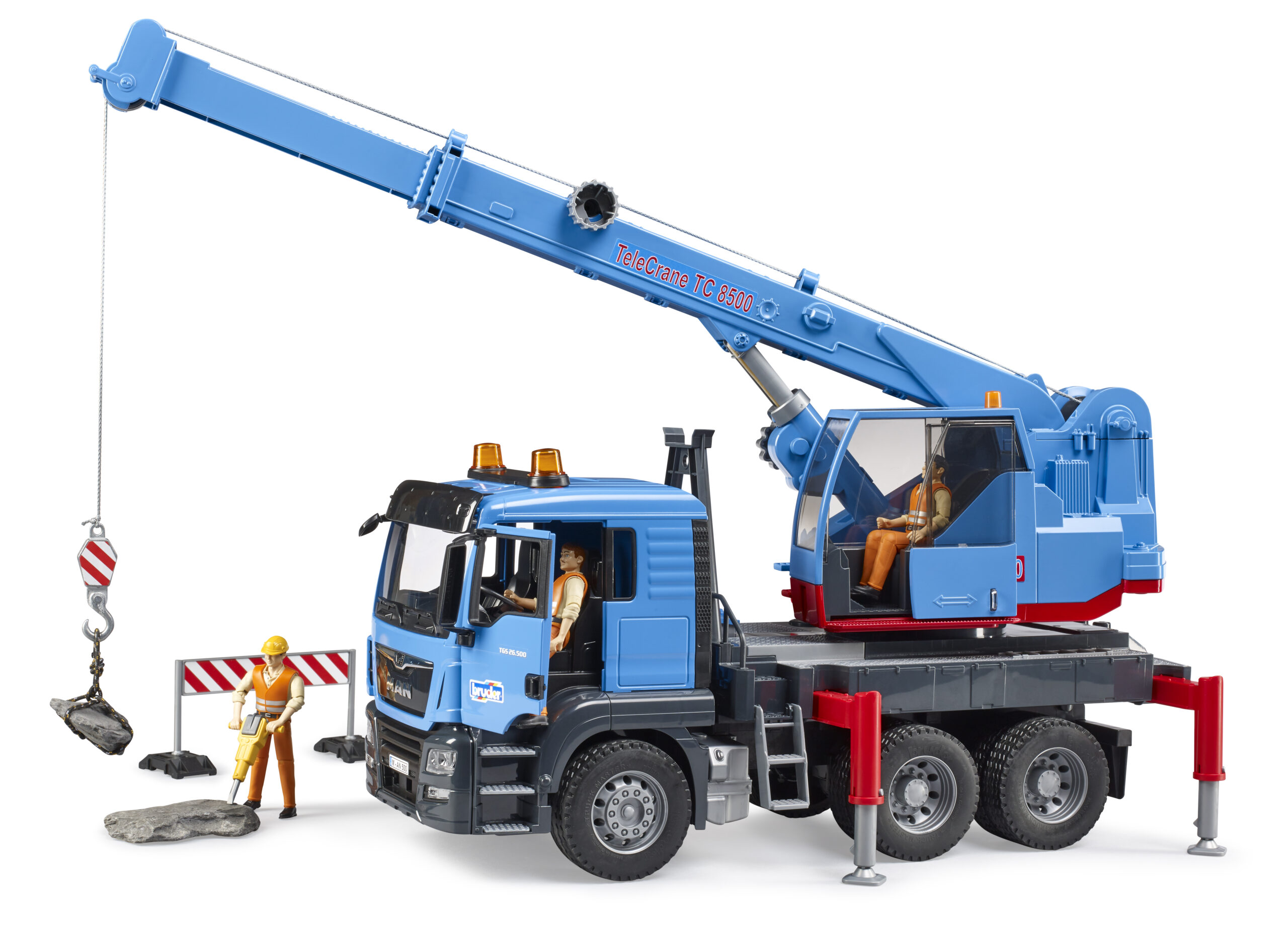 Aspiring crane operators can tackle heavy lifting tasks with this robust utility vehicle. The man tgs crane truck is an essential addition to any construction fleet, featuring a fully functional telescopic boom that extends to reach high places. The crane body rotates a full 360 degrees, allowing for precise placement of materials, while the manually operated cable winch features a locking device to hold loads securely during transport or positioning.