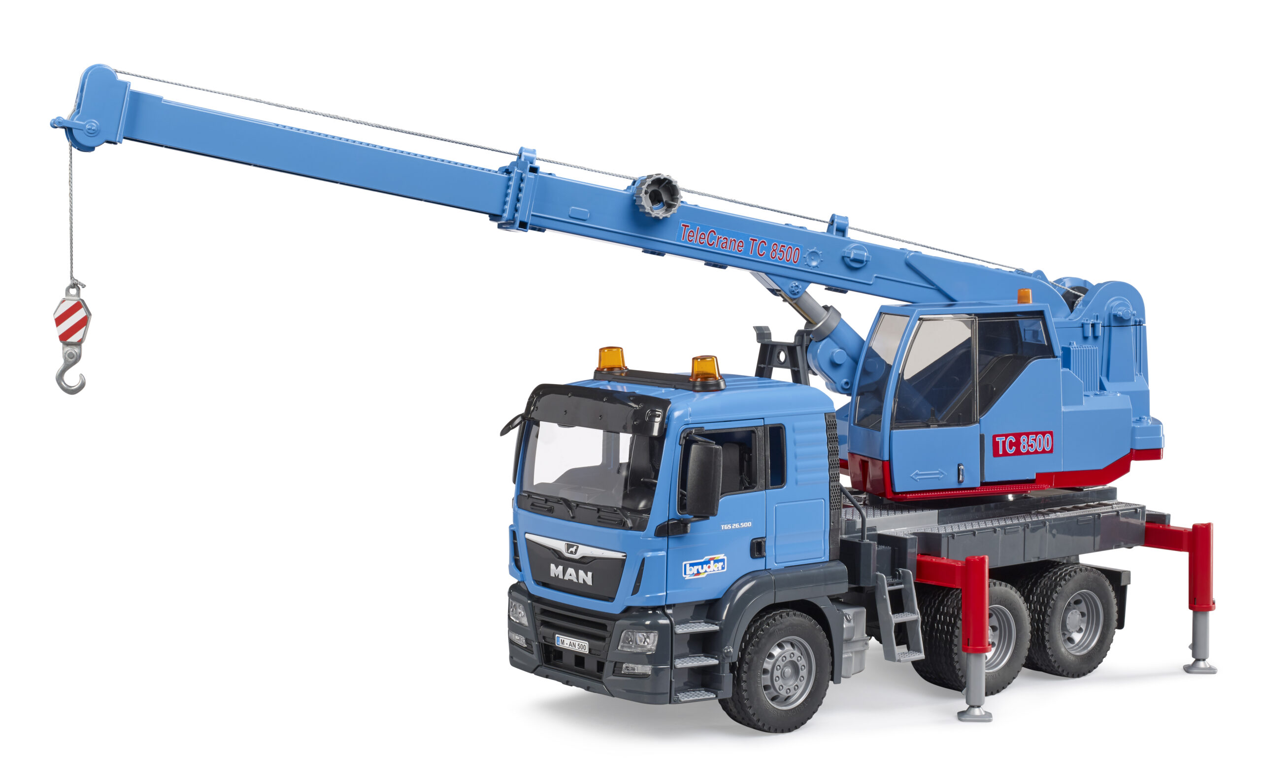 To ensure safety during heavy lifts, the truck is equipped with four extendable stabiliser legs that keep the vehicle grounded and steady. The driver’s cab is incredibly detailed, with folding side mirrors and opening doors that allow figures to access the interior. Built from durable, high-quality plastics, this man tgs crane truck is designed to withstand the rigours of indoor and outdoor play, encouraging fine motor skills and imaginative storytelling.