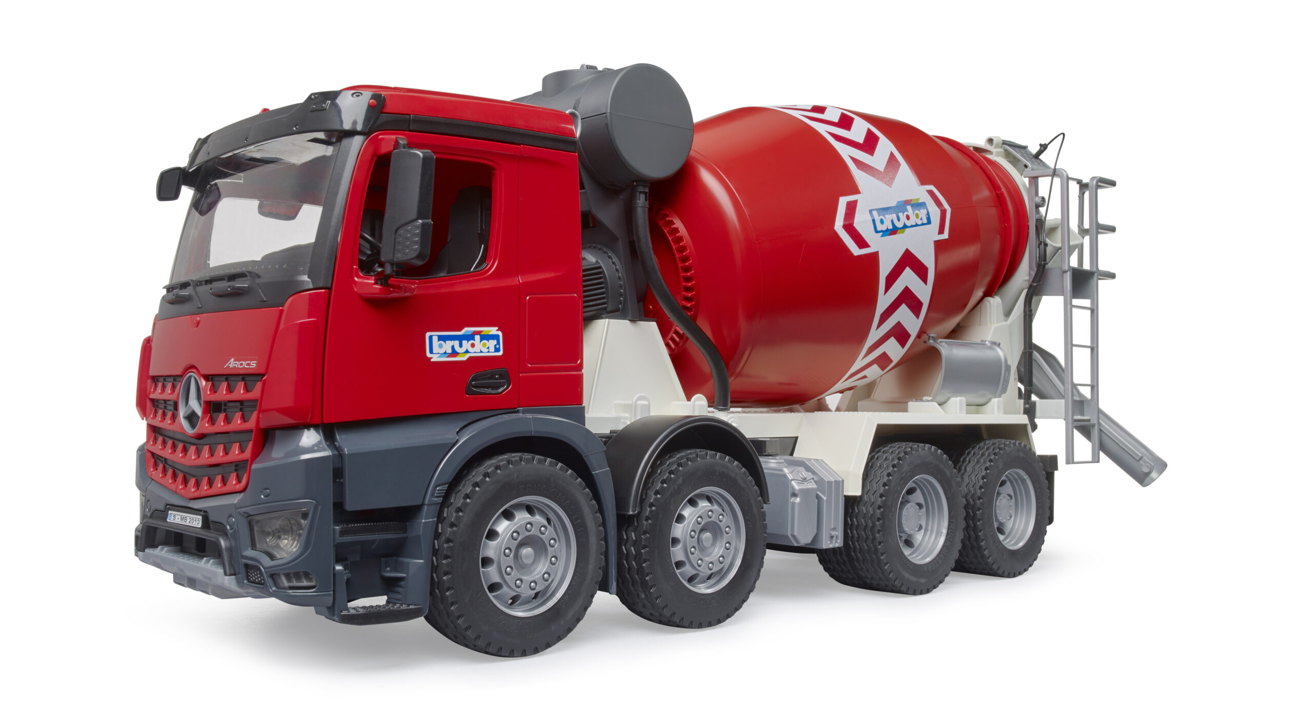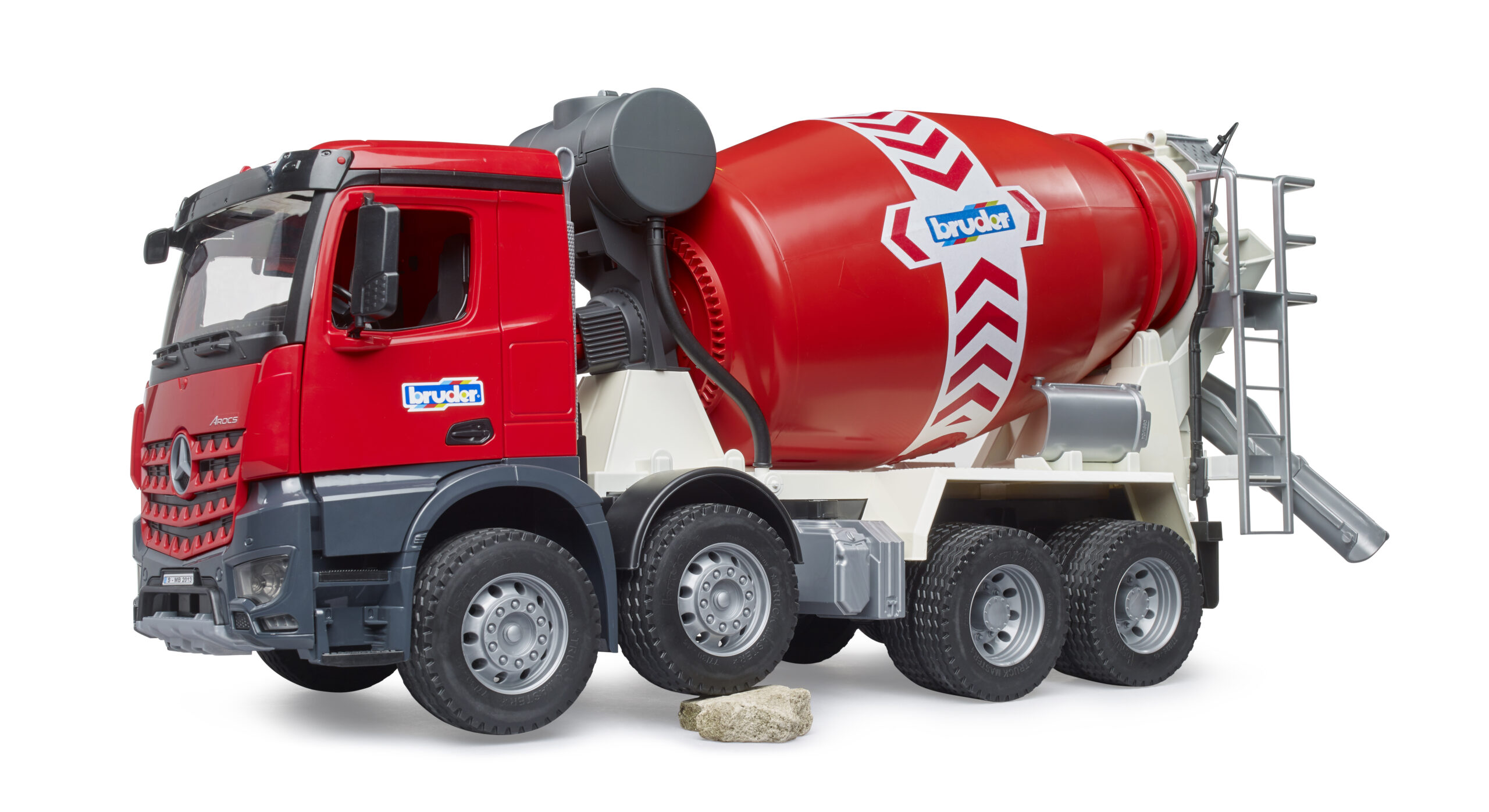 Power up the construction site with this heavy-duty vehicle. The mercedes-benz arocs cement mixer is built for the toughest jobs, featuring a robust red driver’s cab with folding wing mirrors and opening doors that invite young builders to take the wheel. The realistic design mirrors the strength of the actual Arocs trucks found on building sites worldwide, making it a perfect addition to any fleet.
