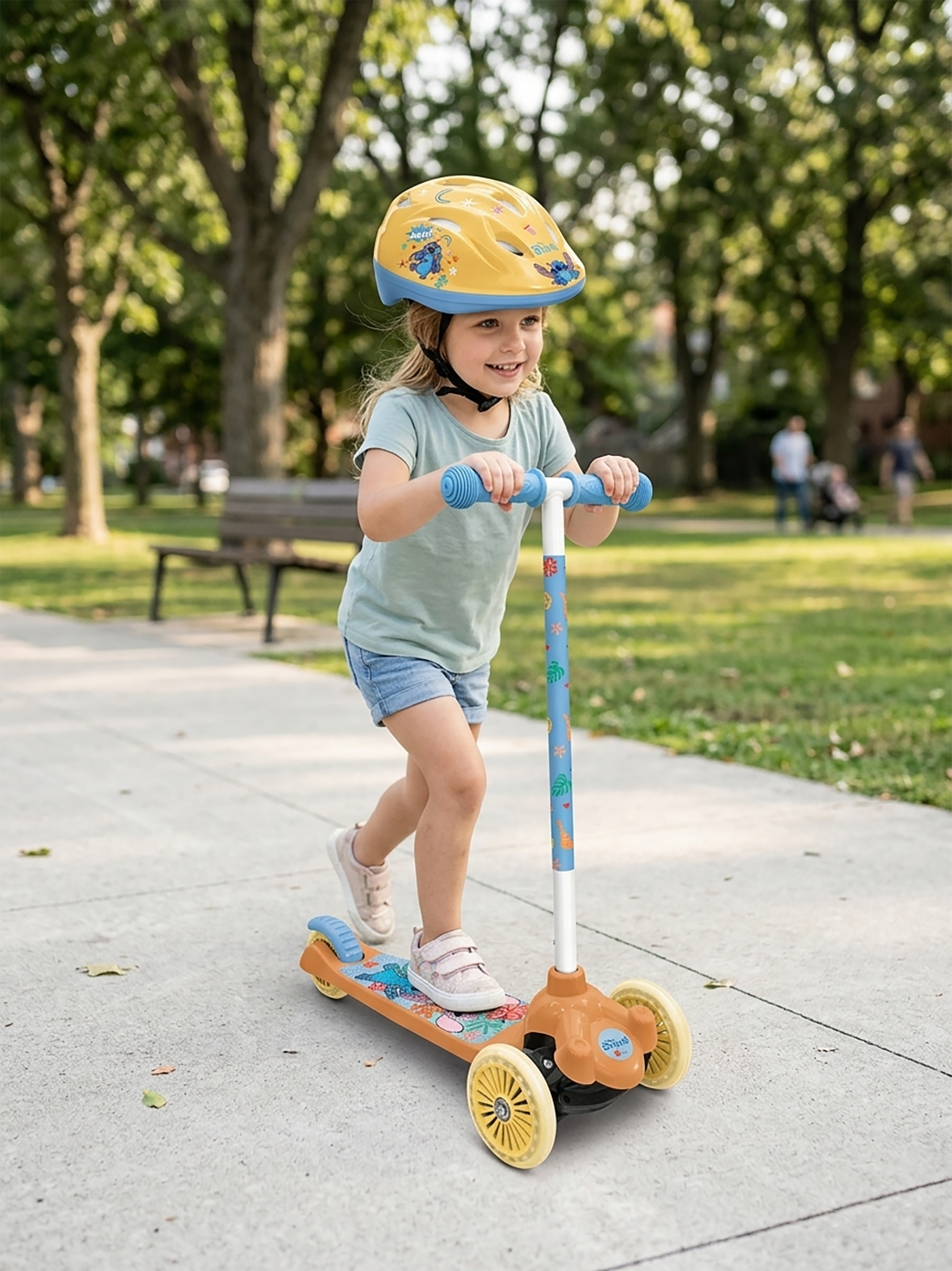 Young fans of Experiment 626 can zoom into outdoor play with this robust and colourful ride. The stitch 3-wheel scooter is specifically designed for beginners, offering a stable and secure platform that builds confidence from the very first glide. Featuring the intuitive lean-to-steer system, children simply shift their body weight to change direction, which helps naturally develop balance and gross motor skills.