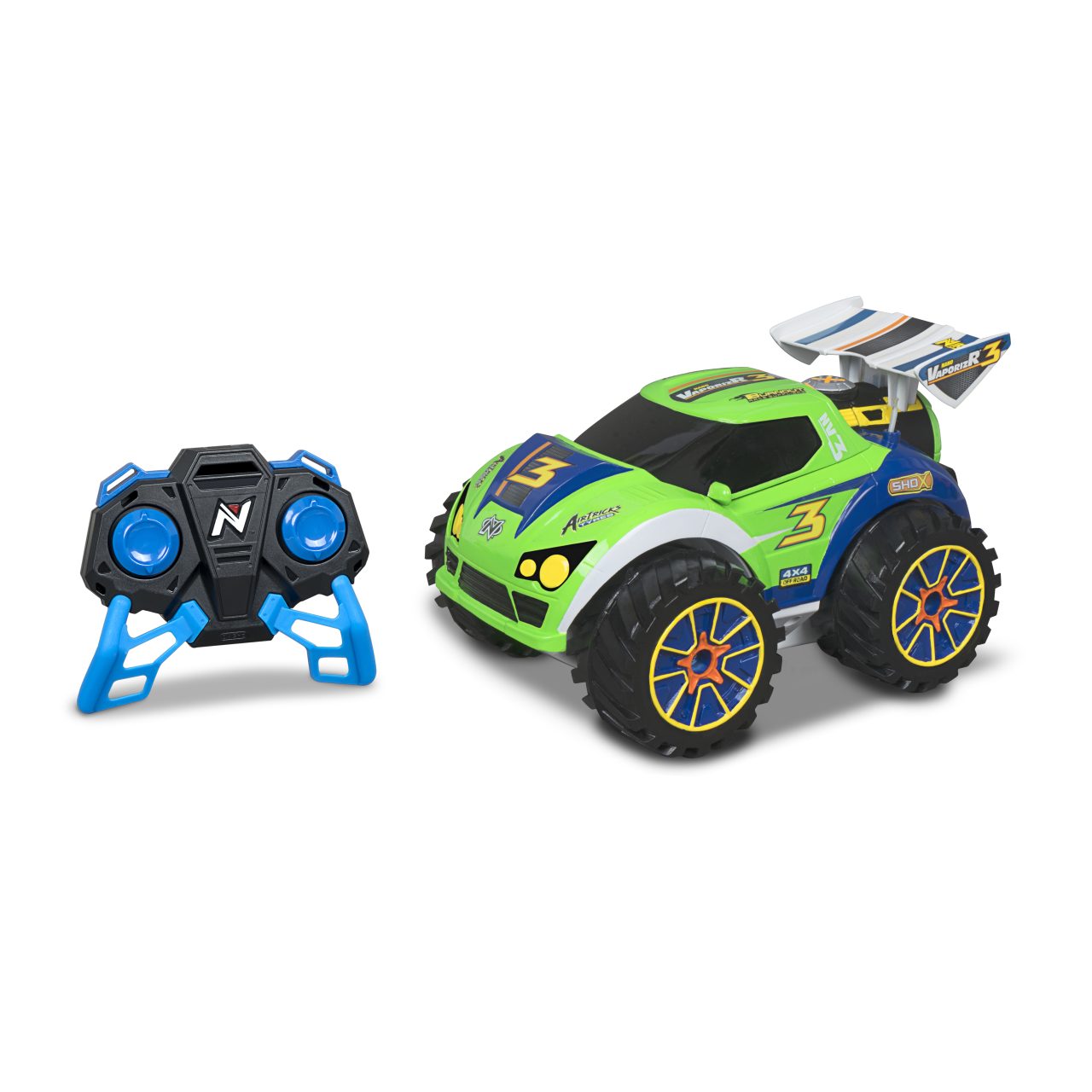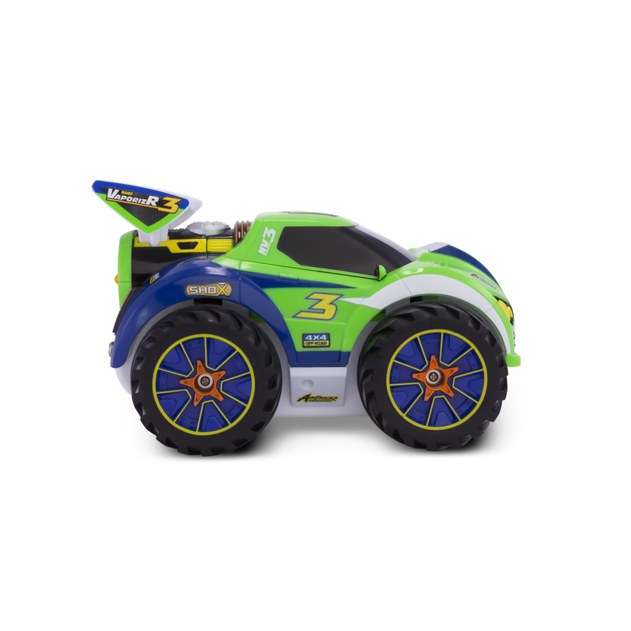 Experience big adventures in a compact package with the Nikko Nano VaporizR 3 in vibrant Neon Green! This 8-inch (20 cm) remote control car is designed for non-stop excitement, perfect for young adventurers aged 6 and above. With fully functioning tank steering and robust 4×4 power, the Nano VaporizR 3 is ready to conquer any terrain – zooming over rugged land, gliding across water, or making tracks in the snow. Its versatility is matched by its agility; powered by two motors, it can perform thrilling 360-degree spins and reach an exhilarating top speed of 9.3 mph. The included 2.4GHz remote control offers a generous range of 40 metres, giving your child the freedom to explore and command their vehicle with ease.