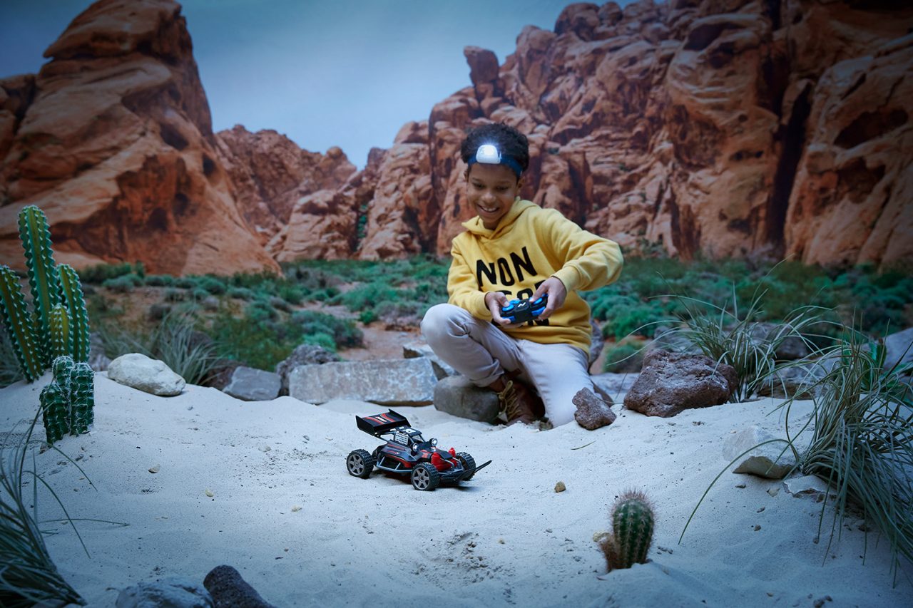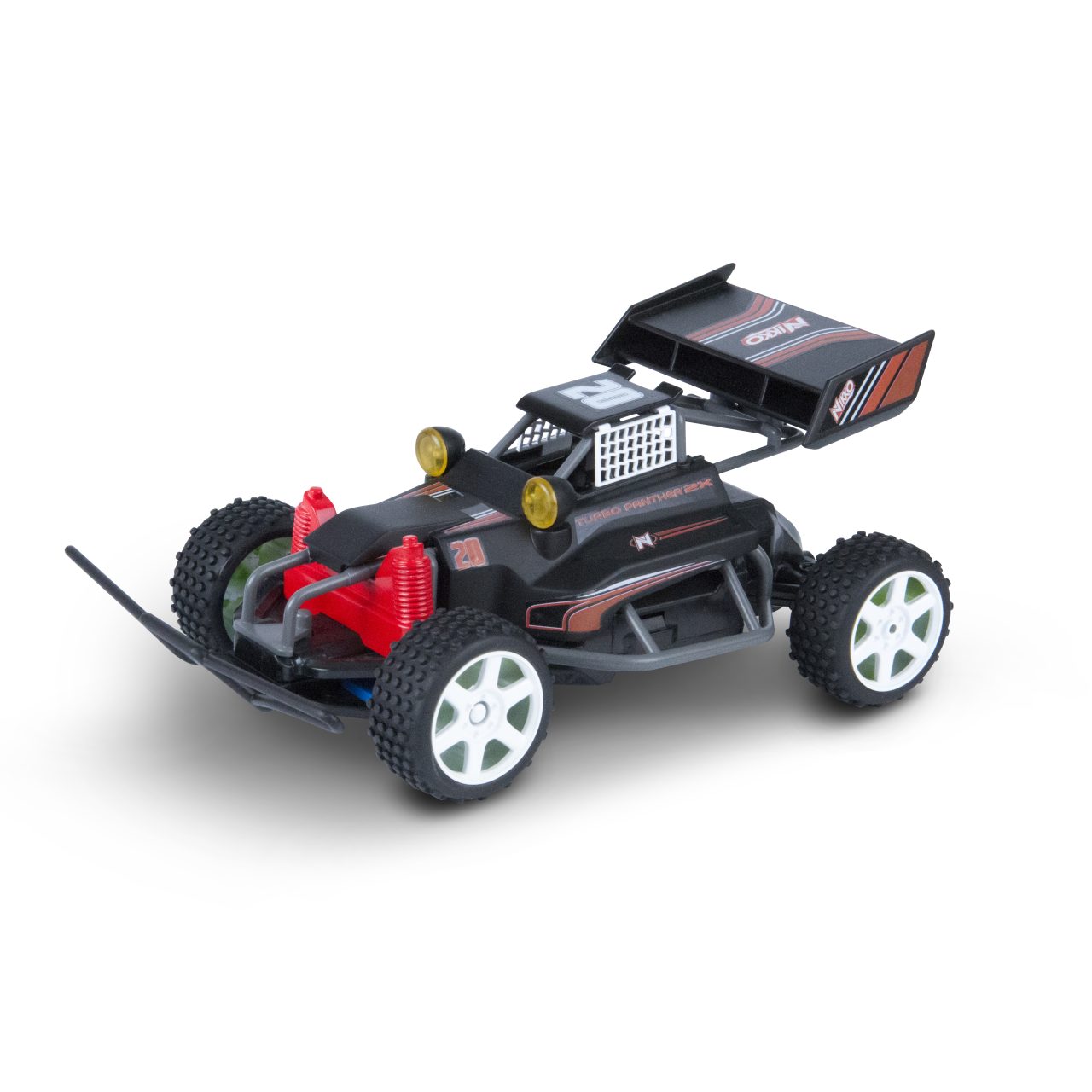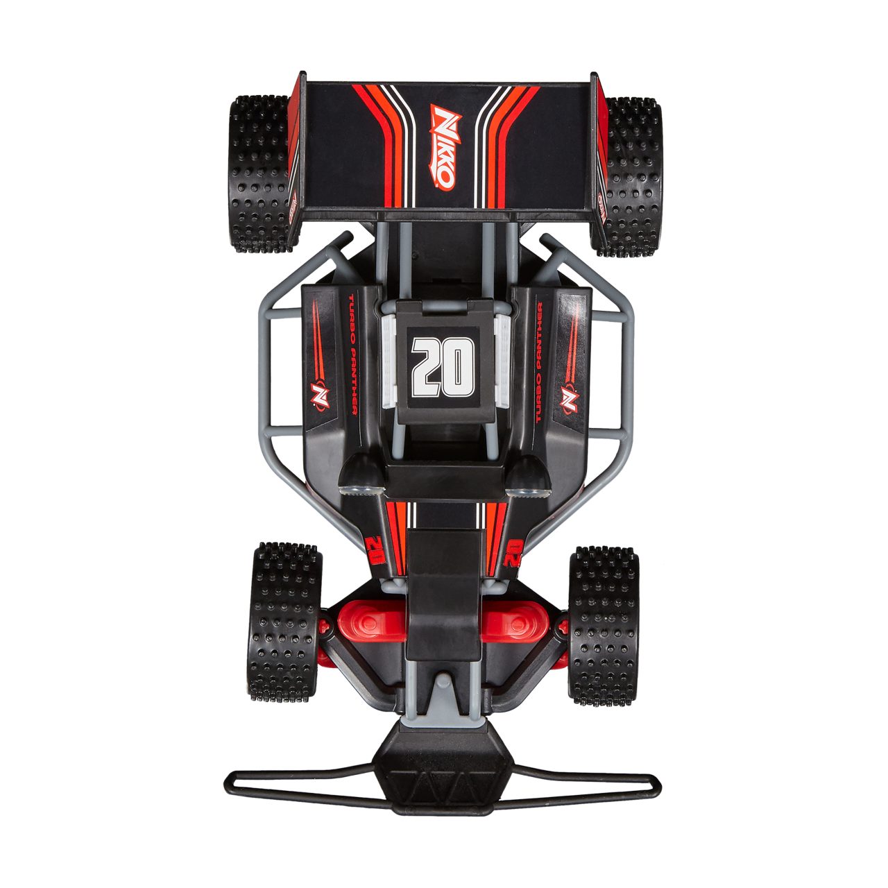 High-octane adventures with the Nikko Race Buggies – Turbo Panther! This incredible 1:18 scale all-terrain remote-controlled race buggy is engineered for thrilling speed and performance, perfect for your little speedster. Ready to race day or night, the Turbo Panther features mesmerizing LED light bars, adding an extra layer of excitement to every chase. Capable of reaching speeds up to 4.7 mph (7.5 km/h), this powerhouse on wheels is ideal for adrenaline-fuelled races both indoors and outdoors. The included precision controller boasts an impressive range of up to 40 metres, giving young drivers the freedom to explore and conquer any course.