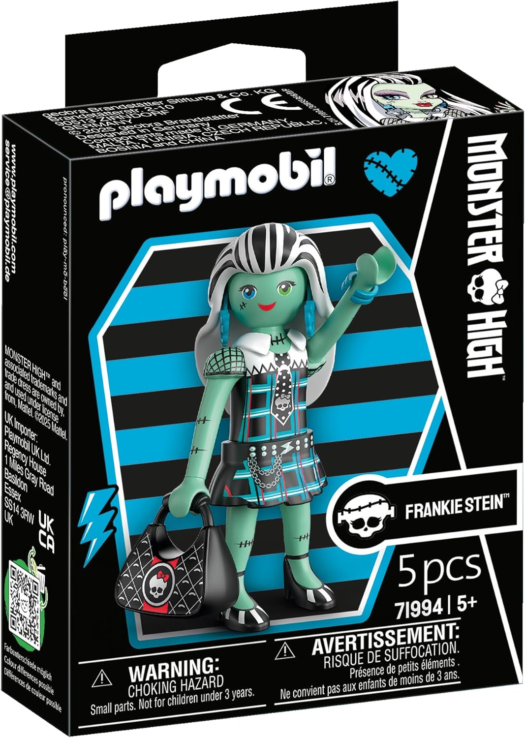 Featuring a detailed Frankie Stein figure along with themed accessories, this Playmobil Monster High set allows children to create their own stylish adventures, school scenes, and magical stories. It encourages self-expression, creativity, and role play, making it ideal for kids who love character-based play.