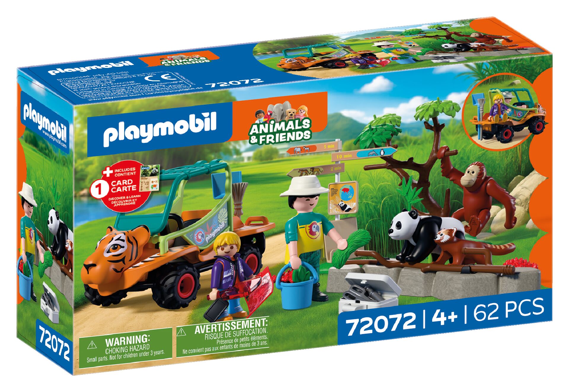 Young animal lovers can speed to the rescue and tend to their favourite wildlife with this action-packed 62-piece kit. The brilliant playmobil zoo caretaker vehicle features an eye-catching tiger stripe design and a spacious rear flatbed, making it perfect for transporting vital food supplies across the park. A dedicated zookeeper and a helpful child figure are ready to ensure every creature is well-fed and happy. Children will love guiding the buggy along imaginary dirt tracks to deliver fresh greens to the hungry giant panda and red panda waiting patiently by their tree enclosure.