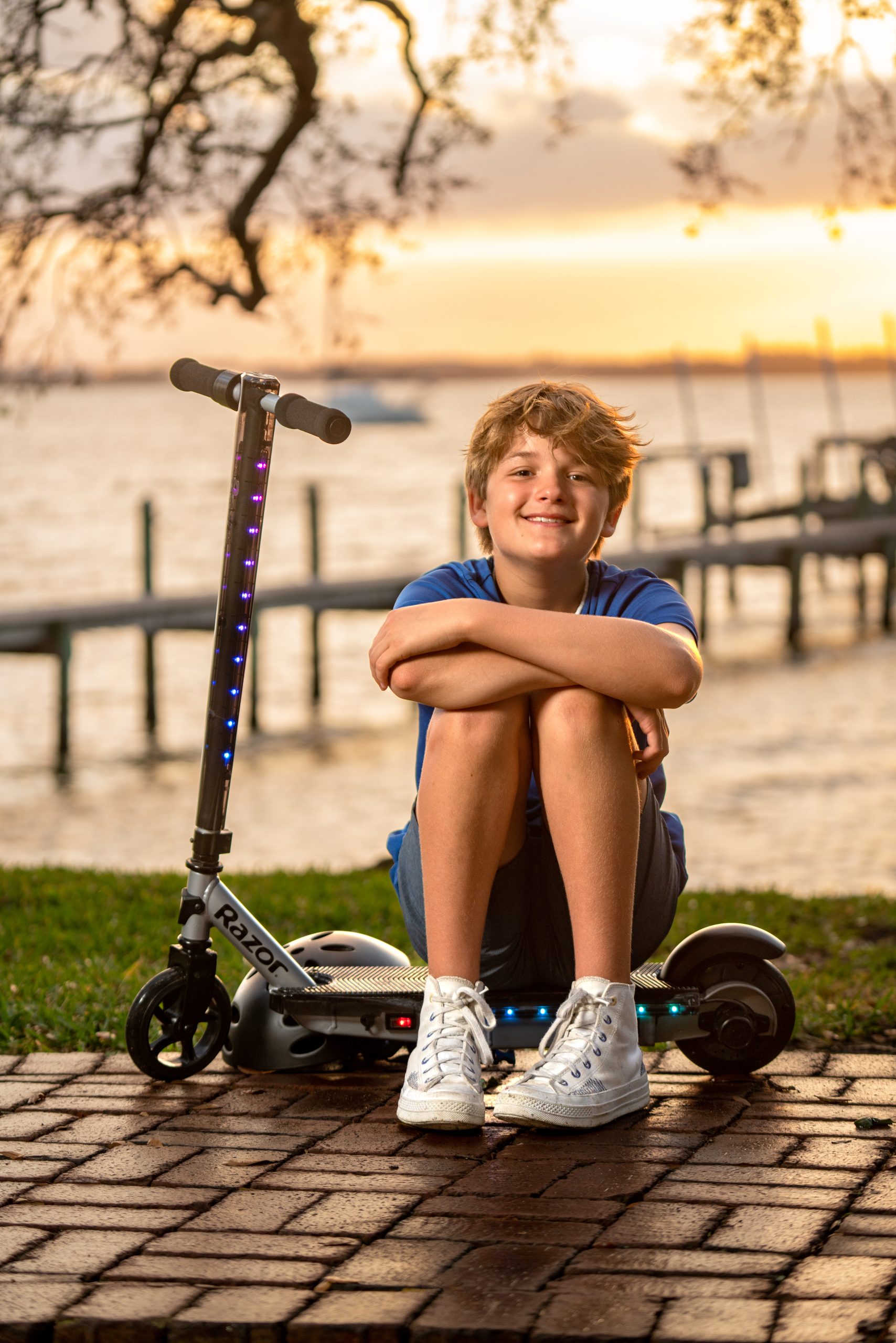 Light up every ride with the exciting Razor Power Core E90 Lightshow electric scooter. Aimed at riders aged 8 years and older, this scooter blends reliable electric performance with a captivating display of blue LED lights embedded along the deck. These lights activate automatically when the throttle is engaged, creating a cool glow effect during cruises. Central to its design is Razor’s Power Core™ hub motor technology; this innovation boosts efficiency, increases torque, and eliminates the need for drivetrain maintenance, offering a superior ride compared to older models. Consequently, riders can enjoy longer adventures, with up to 60 minutes of continuous run time per charge.