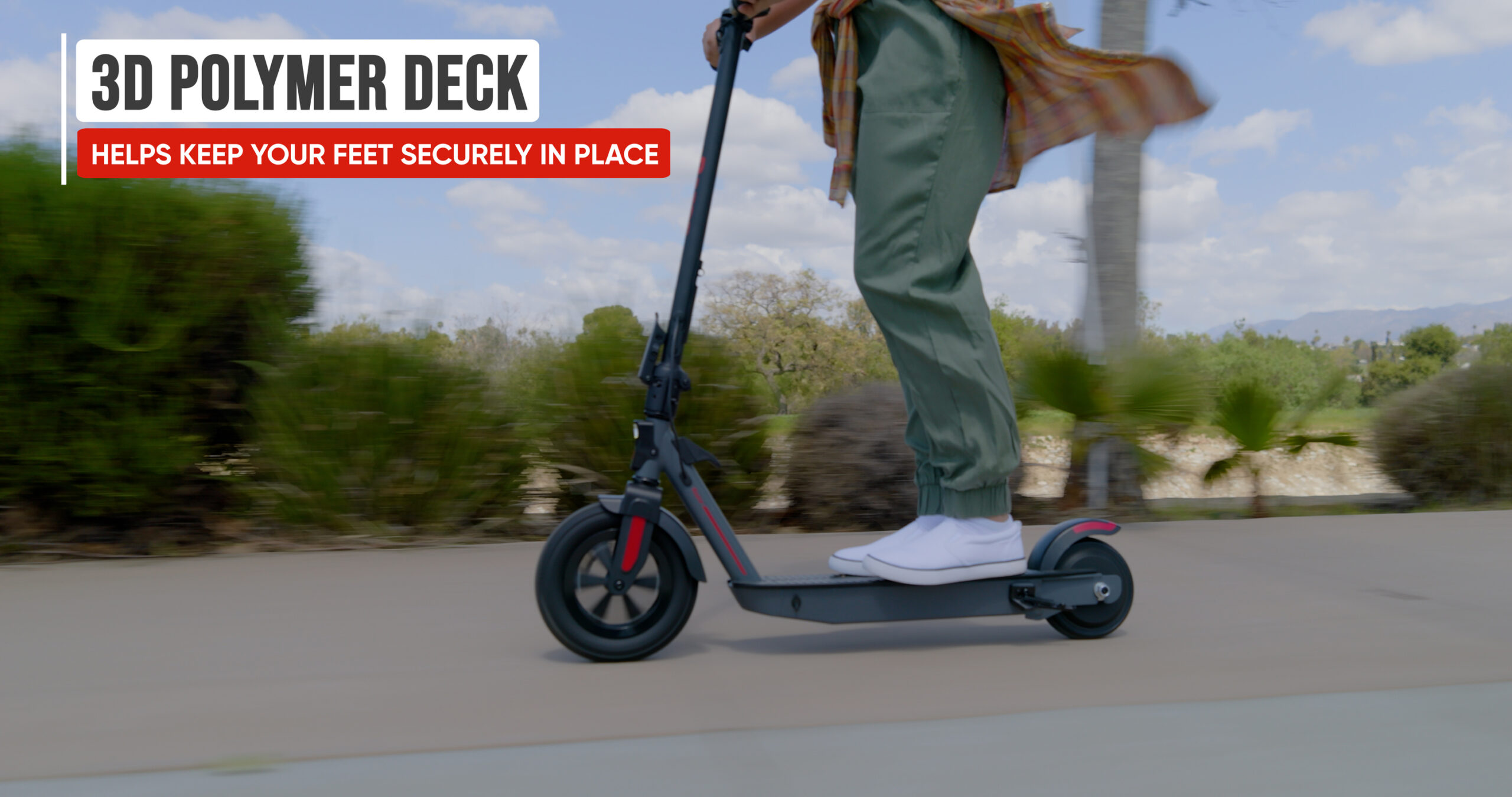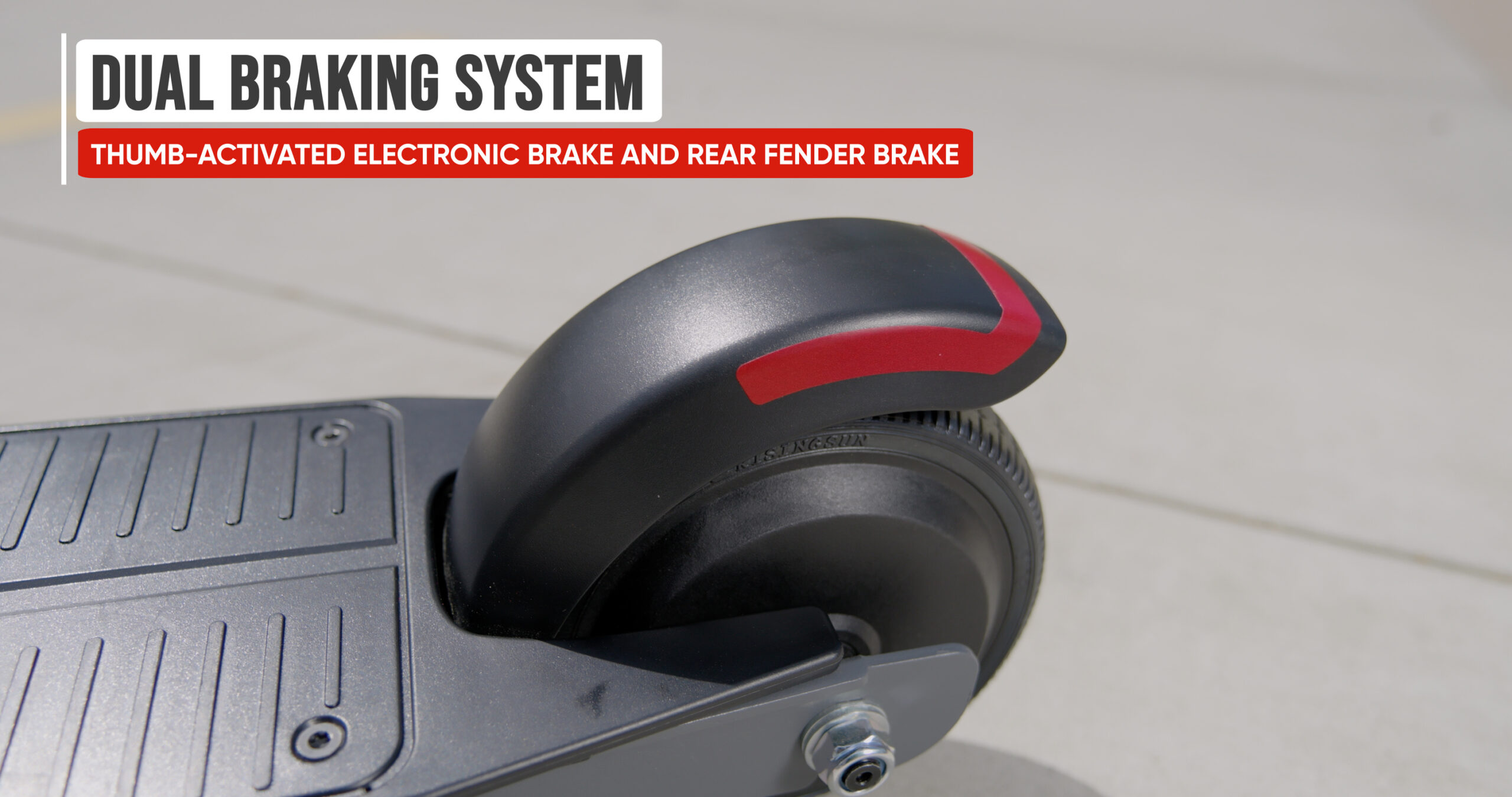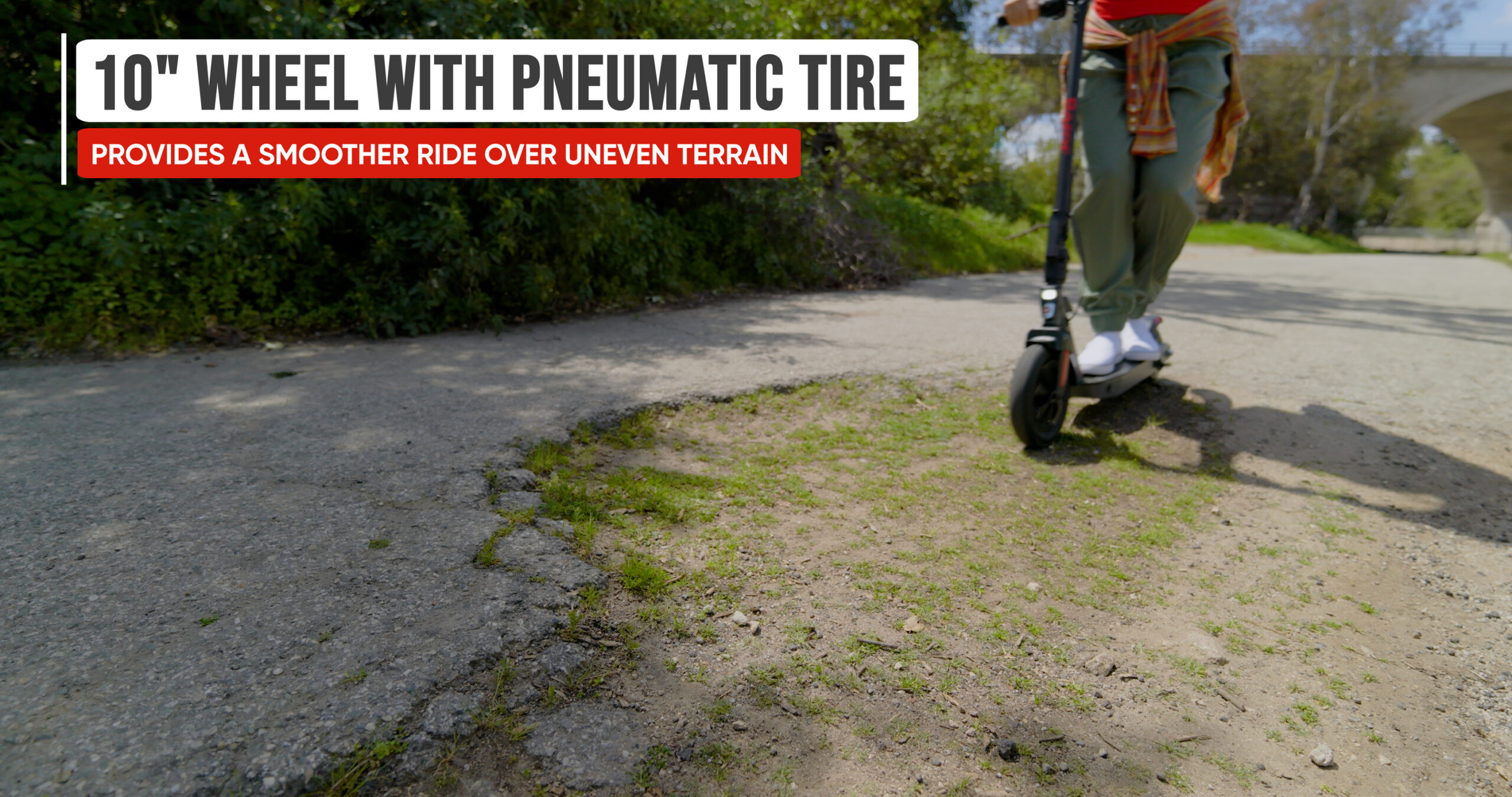 • Large 10-inch pneumatic front tyre ensures a smooth and comfortable ride.