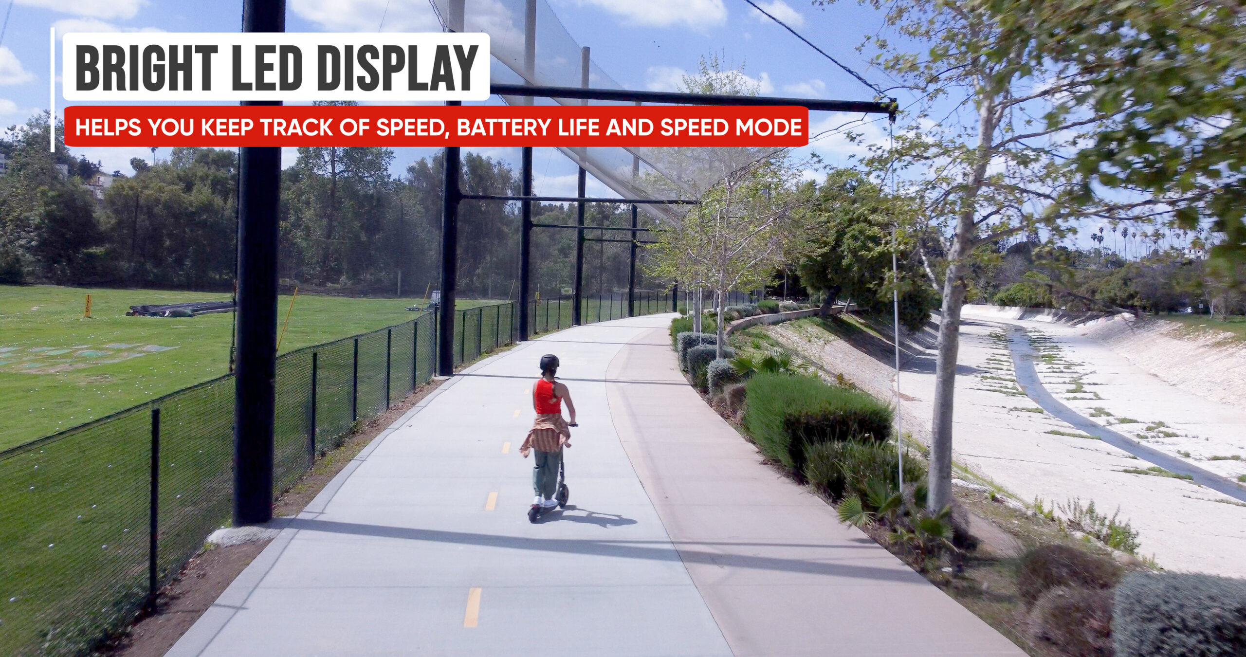 • Three selectable speed modes (Sport, Normal, Eco) with cruise control.