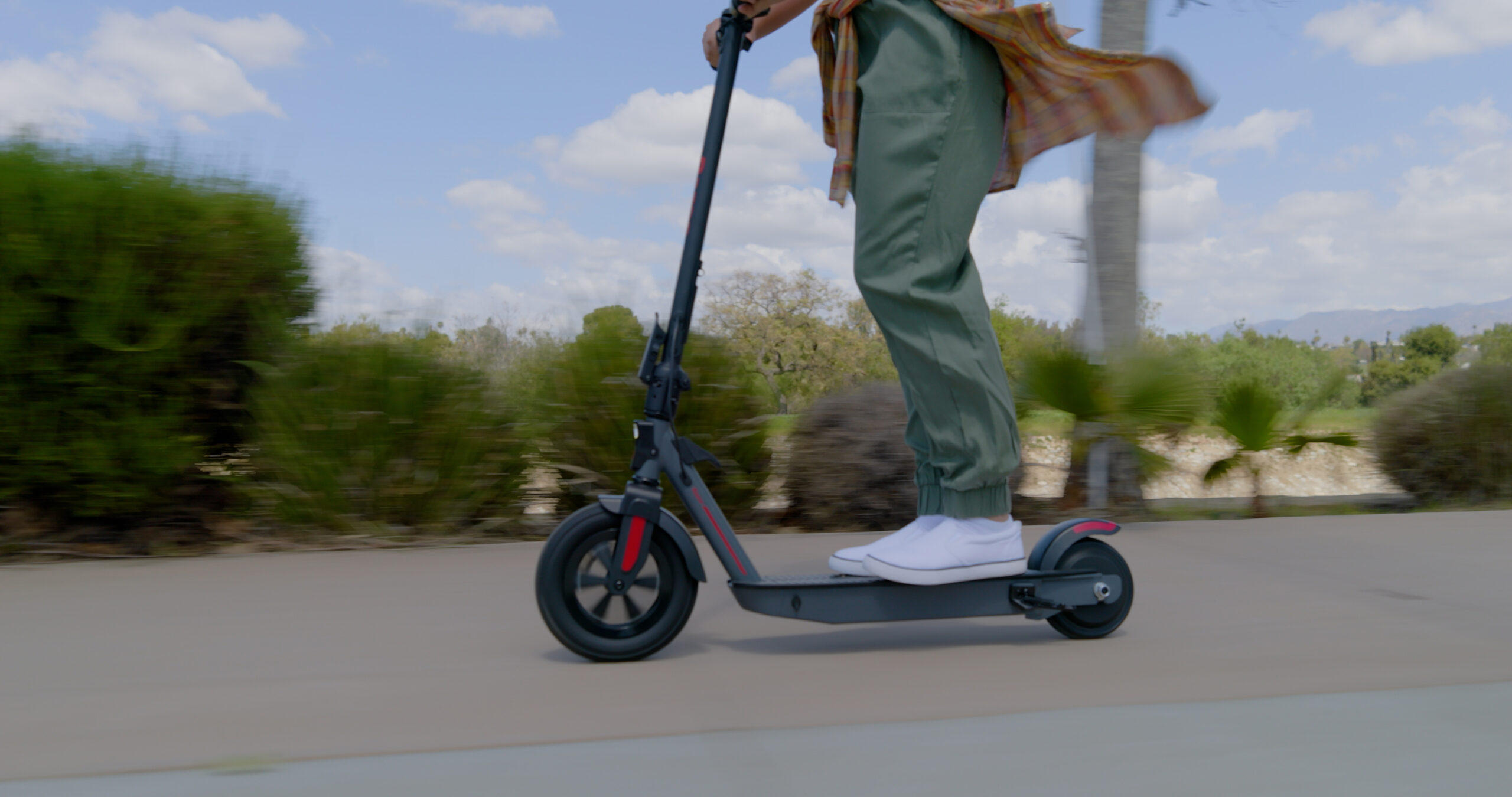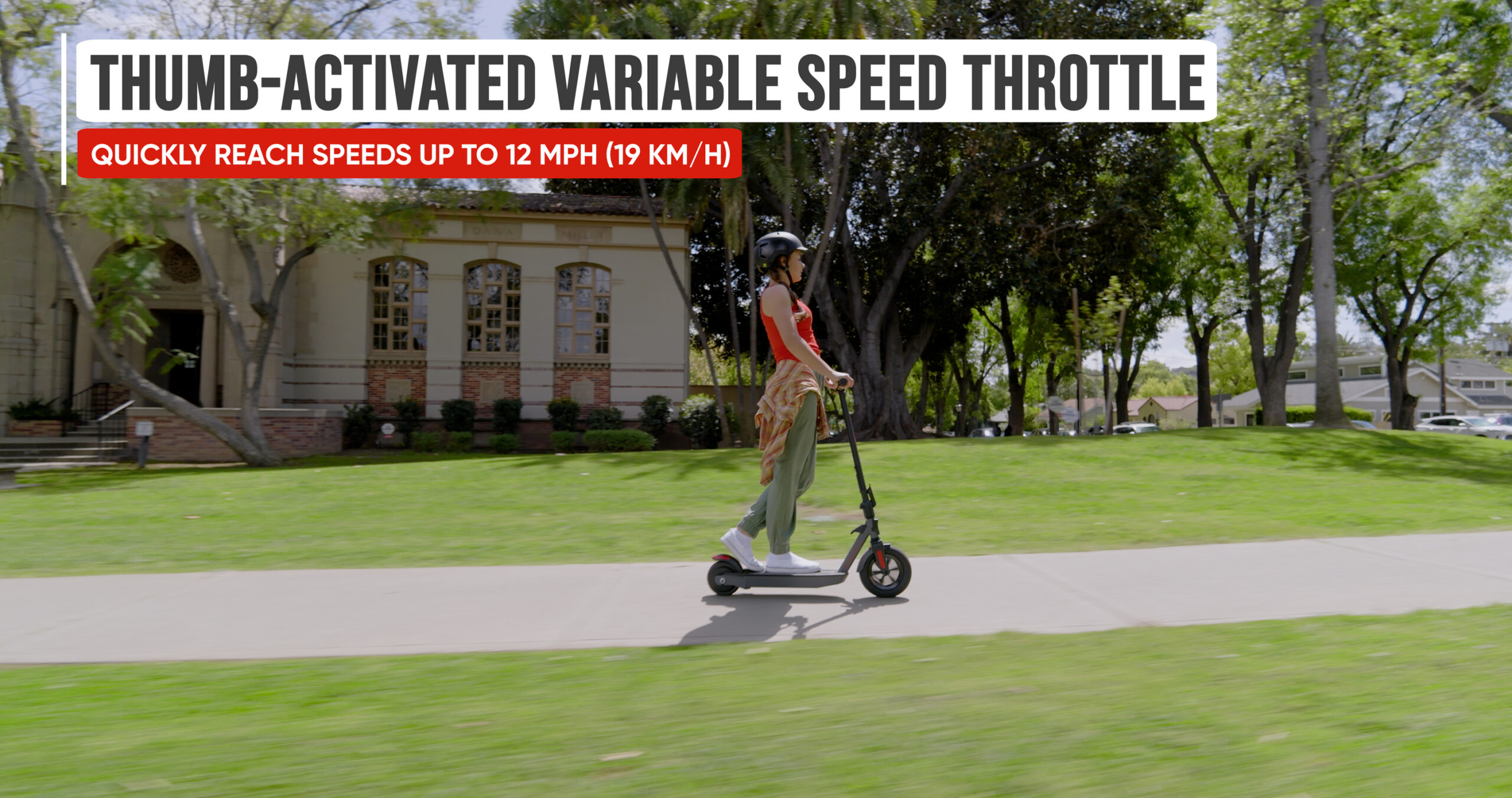 The scooter has a top speed of up to 12 mph (19 km/h) when in Sport mode, but also offers slower Normal (10 mph) and Eco (7 mph) modes.