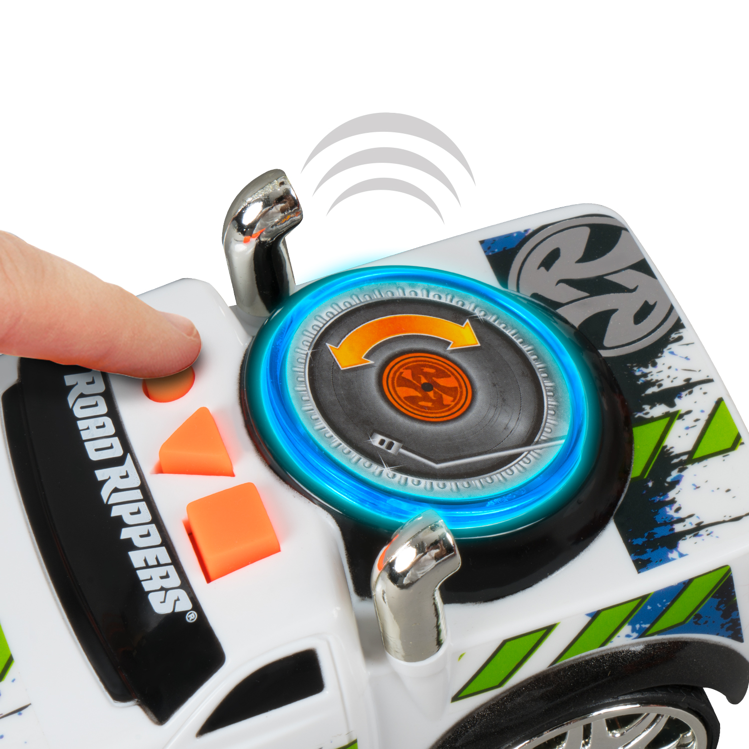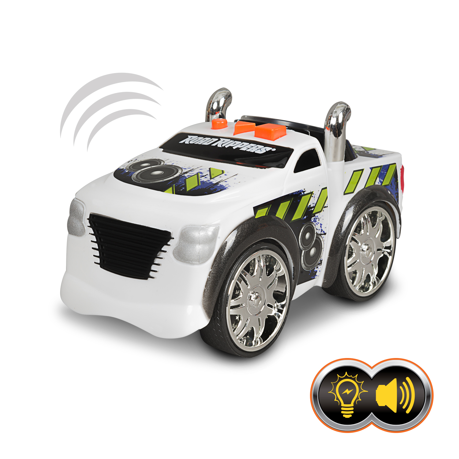 Take control of the beat with the Road Rippers Road Rockin’ Rides – DJ Driver! This fun push-powered vehicle lets you take control of the music. The unique working mixing deck and drum set on the roof lets you add your own rhythm to the track. Unlock even more fun with music, flashing lights, and realistic sounds with just a press of a button. It is the perfect hands-on toy for kids who love to make some noise.