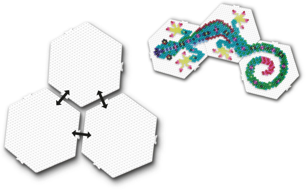 Take your iron-on bead creations to the next level with this set of three connectable Hexagon Pegboards from SES Beedz. The clever interlocking design allows you to clip the three boards together in different configurations, like a long line or a triangle, to create much larger and more intricate pieces of art than a single board would allow.