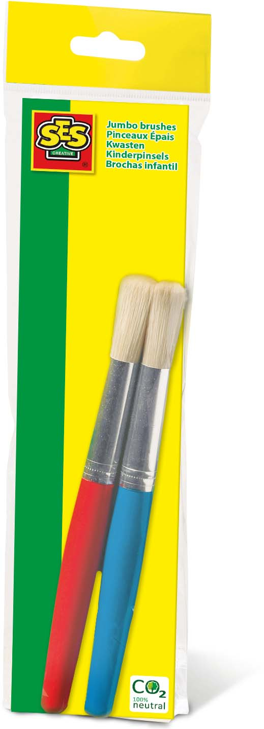 The perfect first paintbrushes for any young artist, this set of two Jumbo Brushes from SES Creative is designed to be comfortable and easy for little hands to use. The thick, chunky handles are easy to grip, giving toddlers more control as they create their first painted masterpieces.